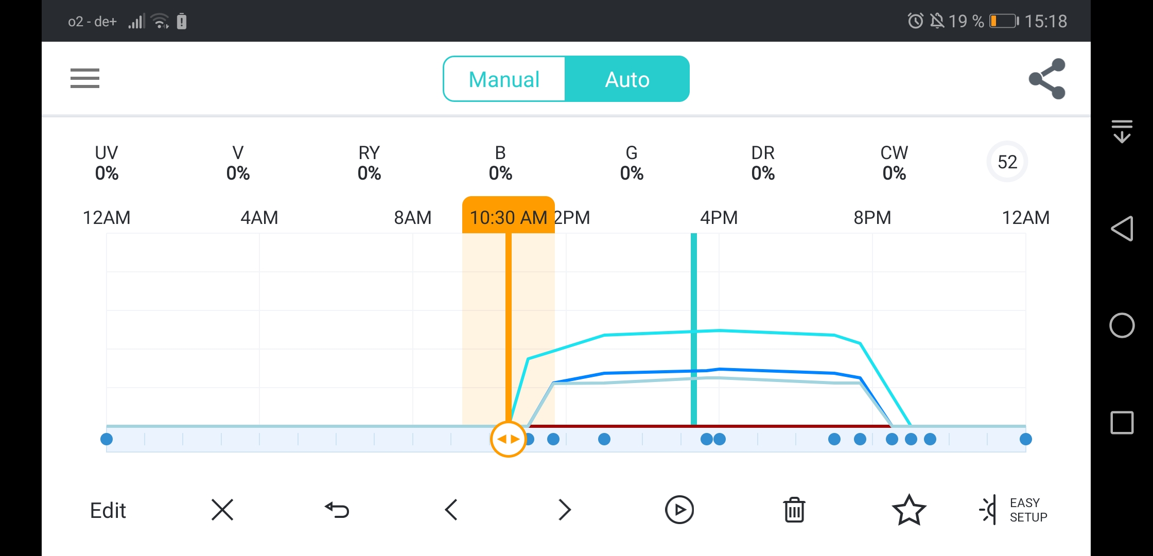 Ferner habe ich die Beleuchtung gedrosselt. Da vornehmlich Royal Blue um 20 Prozent gesenkt und UV, sowie Violett aus. Grün und Rot hatte ich immer aus.