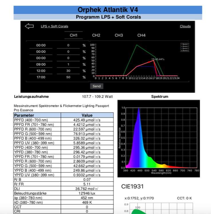 Beleuchtung: Orphek Compact V4 mit "LPS & Soft Setting" und Strong Clouds
