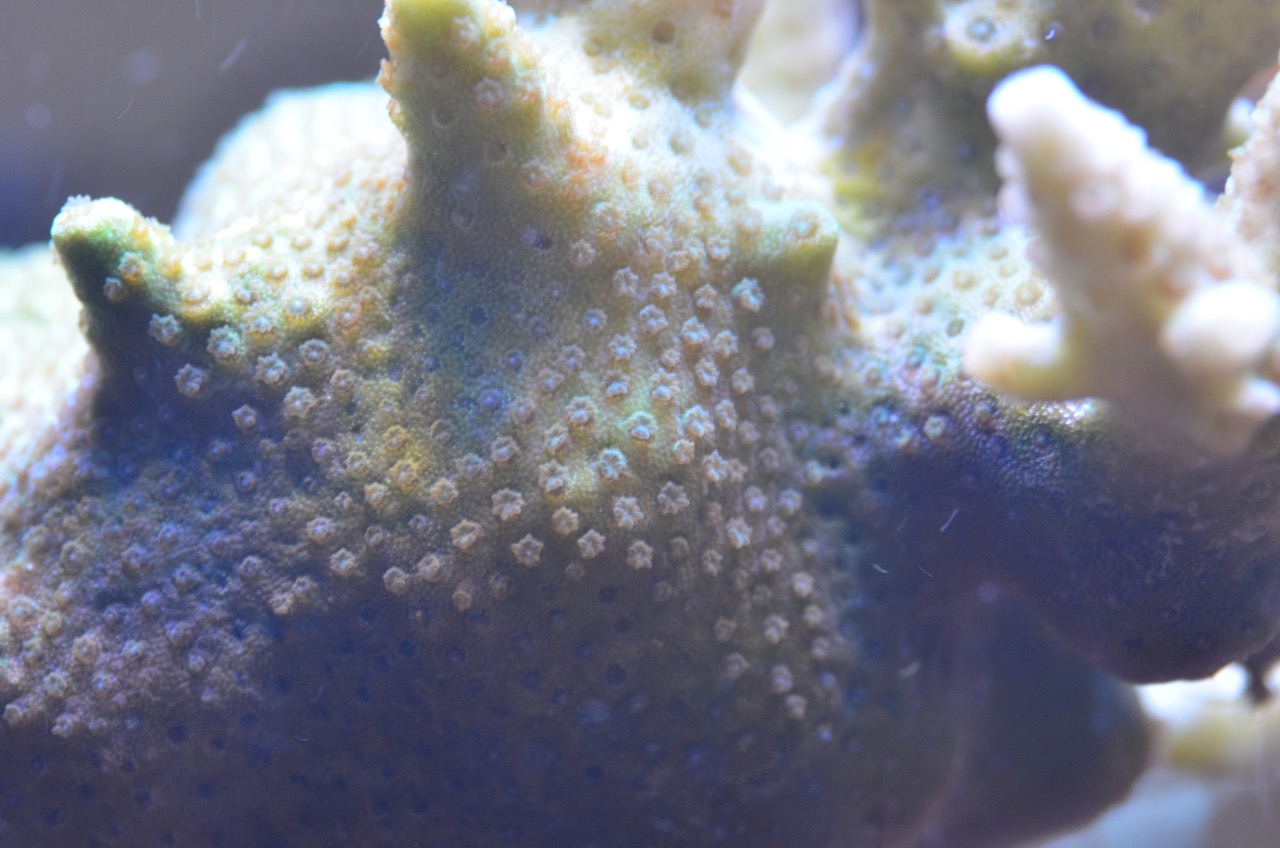 Hi Beni, ich sehe auch keine. Die Koralle befindet sich schon in einem schlechten Zustand. Wie sieht es bei den anderen Acroporen aus? Wie sind aktuell Deine Wasserwerte?