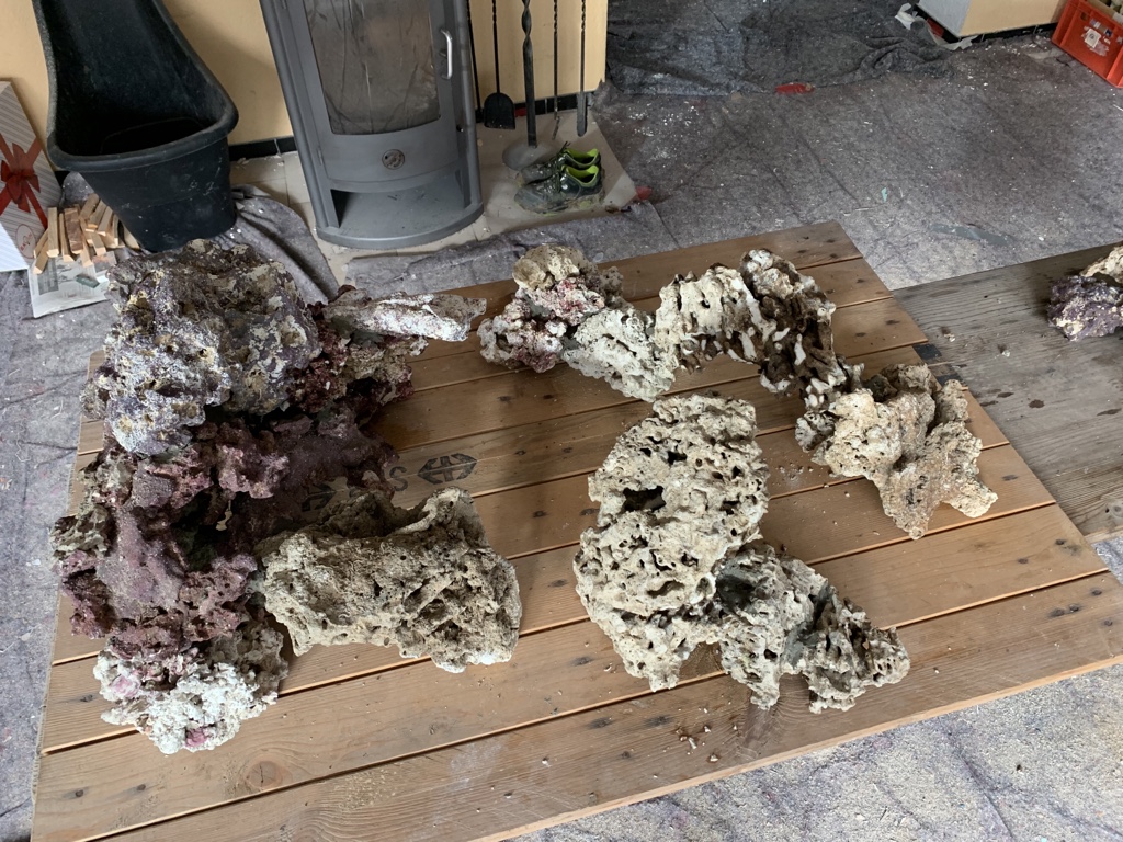 Der Aufbau wird aus Real Reef Rocks, totem Pukani Riffgestein und ein paar kg Lebendgestein, welches direkt für mich importiert wird, bestehen.
