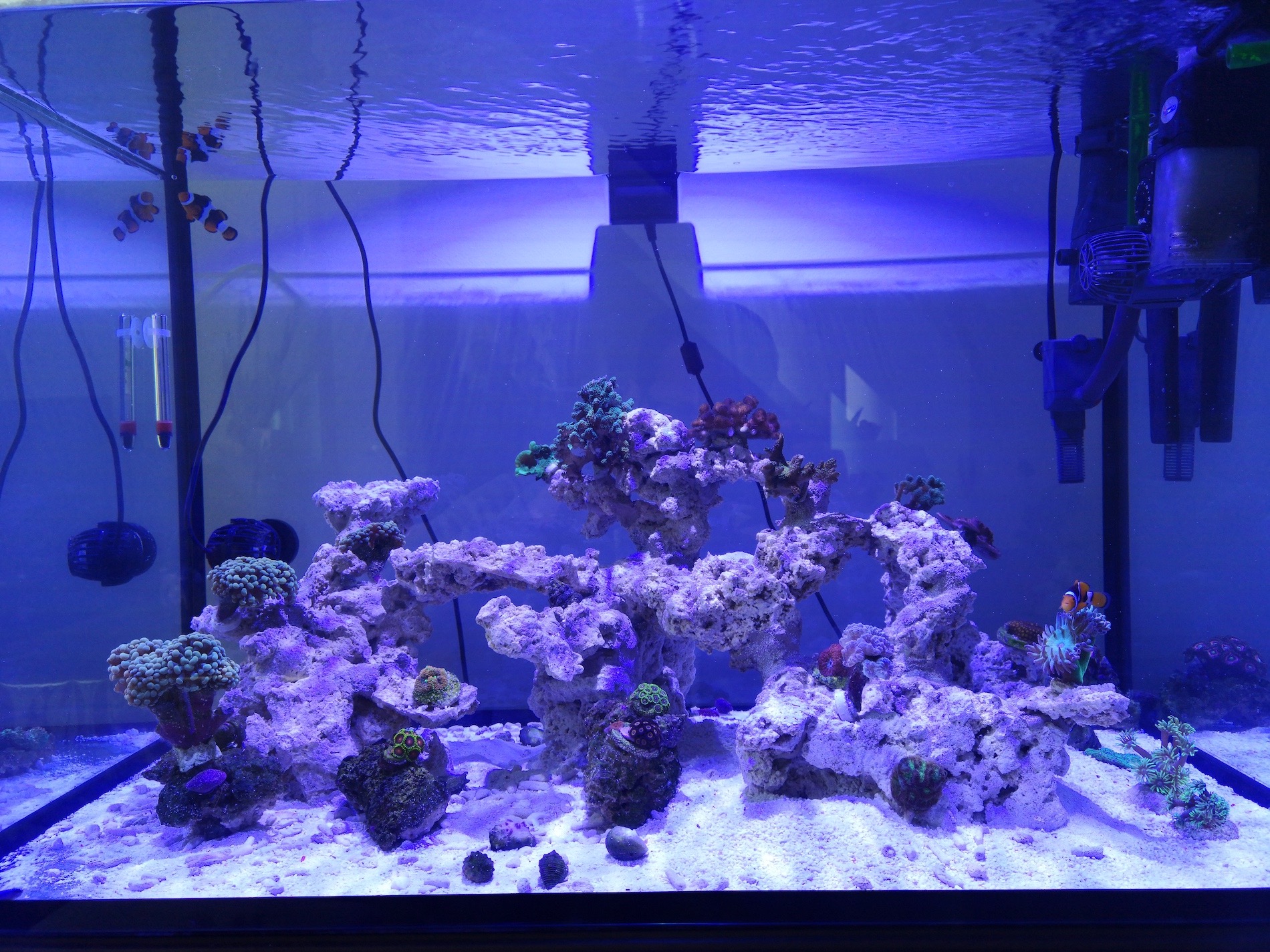 Eheim 350 Skimmer und Filter. Der Skimmer + Filter wird wahrscheinlich demnächst gegen einen Abschäumer ersetzt. Bin noch am überlegen zwischen Tunze 9004 dc und Magus bubble QQ2.
