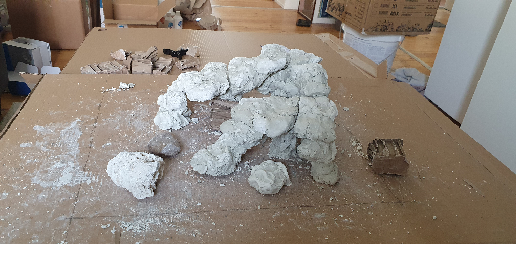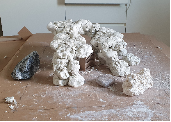Die Idee ist hier ein "1:1" Modell des Aufbaus vom Konzept her mit der Modelliermasse zu erstellen weil es einfacher ist als gleich mit Steinen zu verkleben.