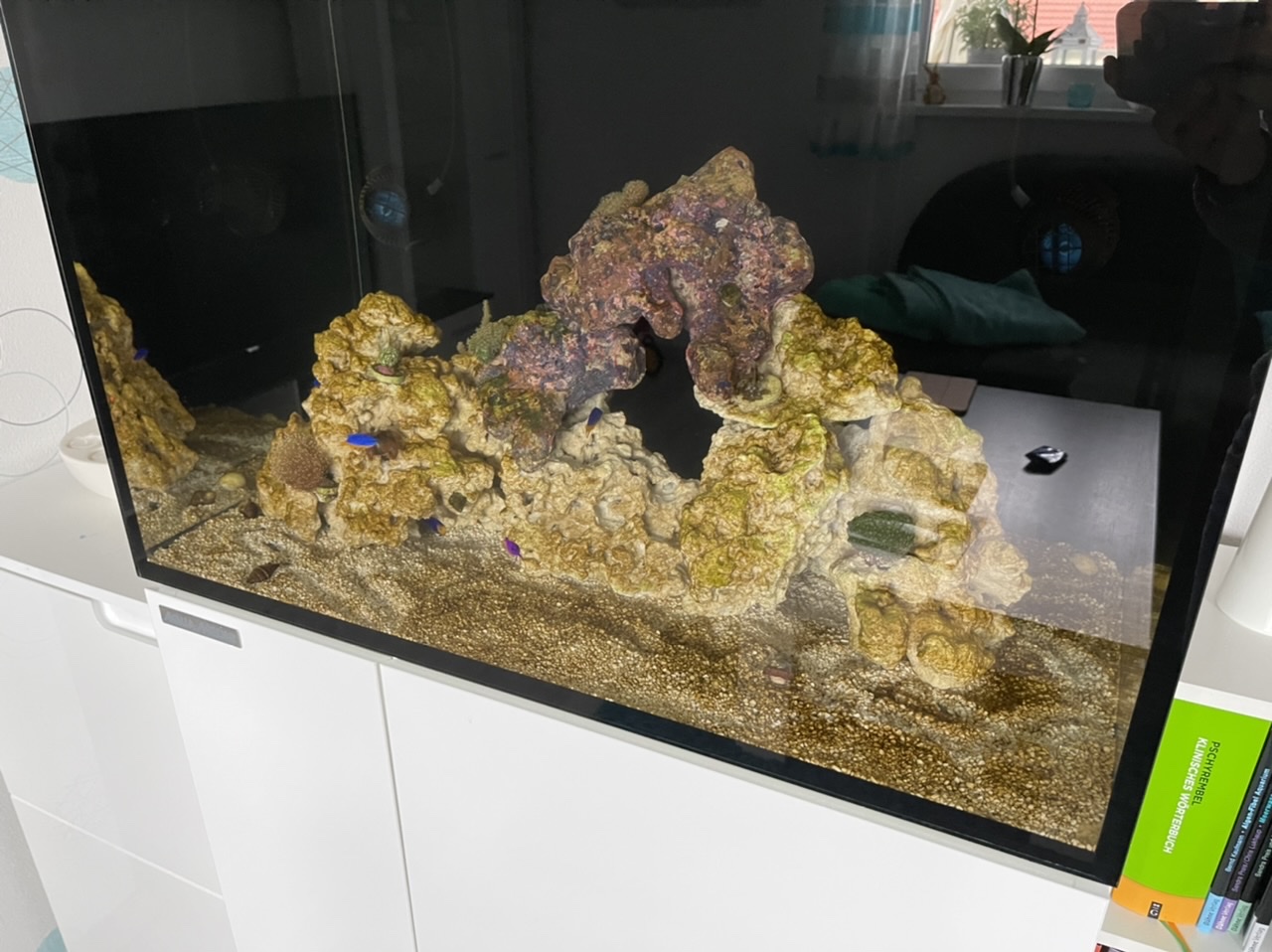 Korallen rein, Fische rein und dann lief es erstmal ohne Algen3 Wochen weiter.