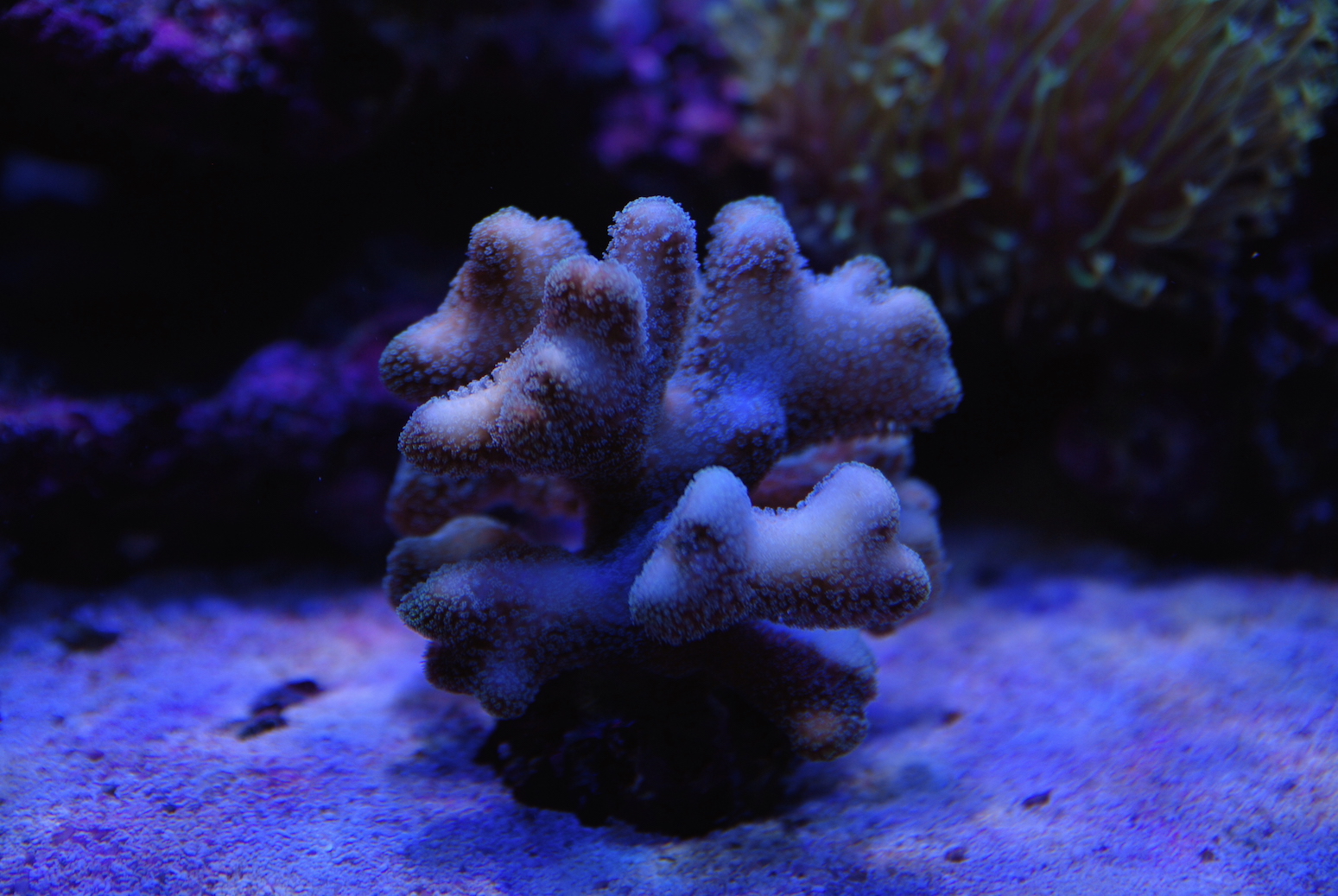 Anbei nochmal ein aktuelleres Bild des gesamten Beckens und auch von der angesprochenen Stylophora, die plötzlich ihre Farbe verloren hat.