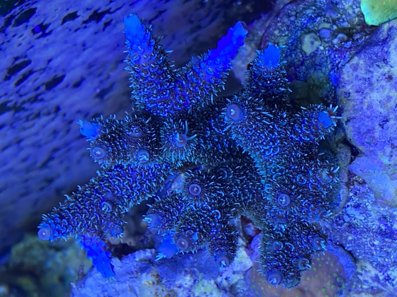 Jetzt ist weiter Geduld gefragt. Eine Acro will noch nicht so die Farbe zeigen, die sie eigentlich hat und insgesamt dürfen die SPS etwas heller sein. Aber solange alles wächst, bin ich zufrieden.