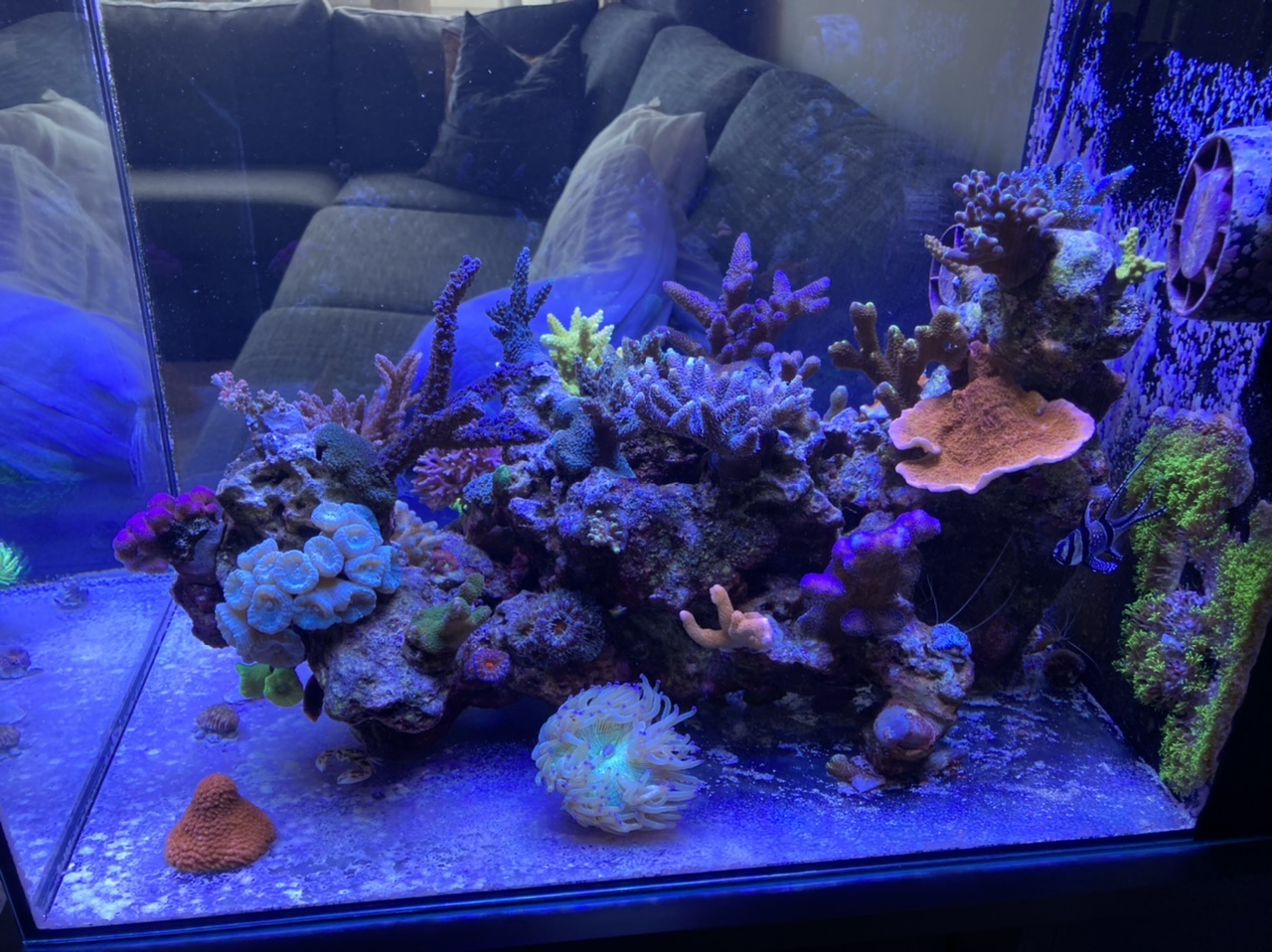 Danke für die Infos. Das Spektrum ist recht nah an den Empfehlungen, die ich für die Straton mal gemacht habe, die ATI auch übernommen hat für die alte Straton. Glaube meinen Namen haben sie aus der neuen pro App gestrichen, aber die Einstellung mit dem SPS plakativ behalten. Aber ich weiß es nicht genau. Ich hatte damals Royalblau bei 200 statt voll bei 255, etwas weniger UV und Violett (130/150, Du hast 140/190, aber meine Empfehlungen gelten auch v.a. für eine gesunde und auf Photosynthese getrimmte Lichtumgebung, wenn man die Lampe neu hat, ein neues Becken aufsetzt oder Probleme hat, d.h. man kann im kurzwelligen auch experimenteller werden wenn das Becken damit klar kommt und man das beherrscht, was ja offensichtlich der Fall ist). Ansonsten sind die Einstellungen fast gleich. Cyan habe ich in den Empfehlungen bei 200 (Du hast 190) und ich habe 5 Punkte weniger rot (15 statt 20 bei Dir), Weiß ist gleich. Von daher hast Du eine durchaus gesunde Lichtumgebung, nicht zu aggressiv und optisch sieht das bei Dir gut aus.