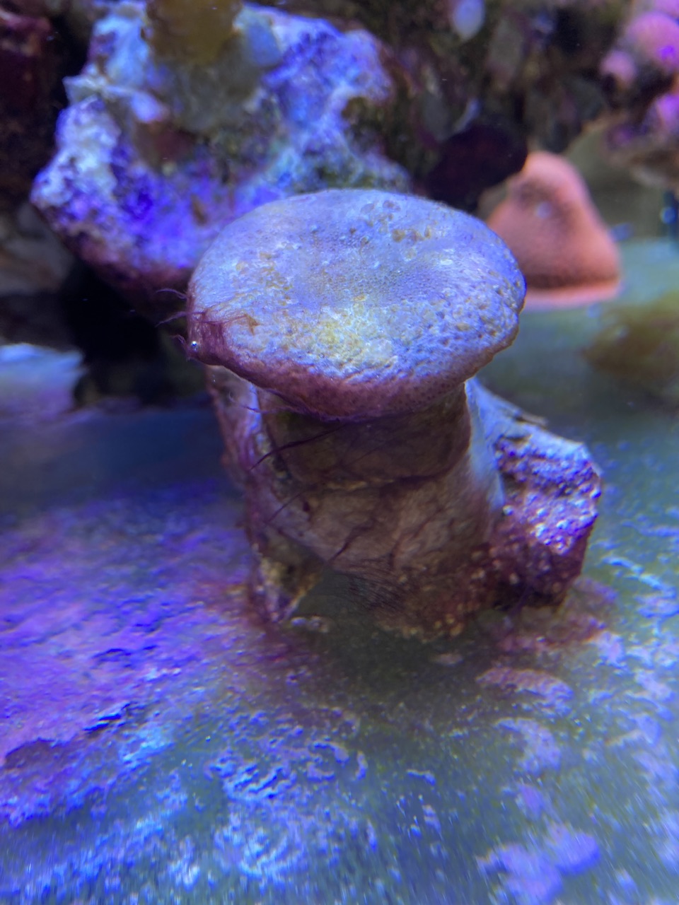 Übrigens diese SPS scheint sich zu regenerieren..bei dem letzen Bild von ihr war das Gewebe weiß …