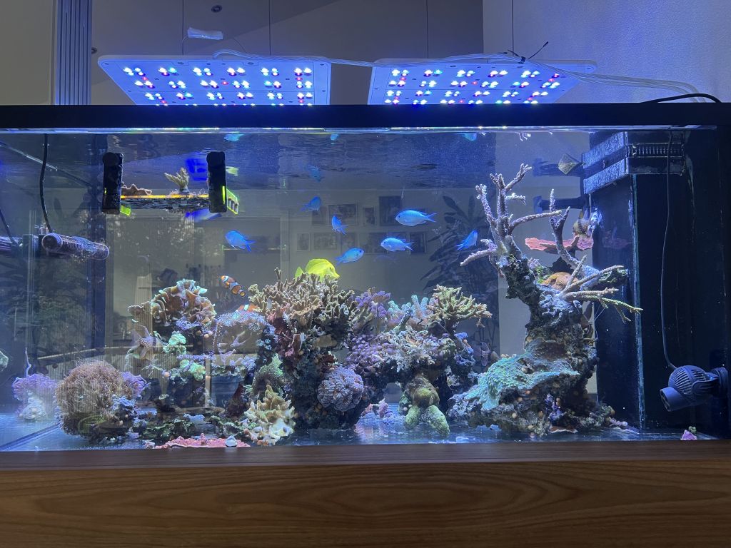 Samstag wechsel ich 50-60% Wasser, werde die beiden Großen Acros rausnehmen und fragmentieren. Versuchen das Riff etwas zu lockern. und die fragmentierten teile darauf zu Platzieren.