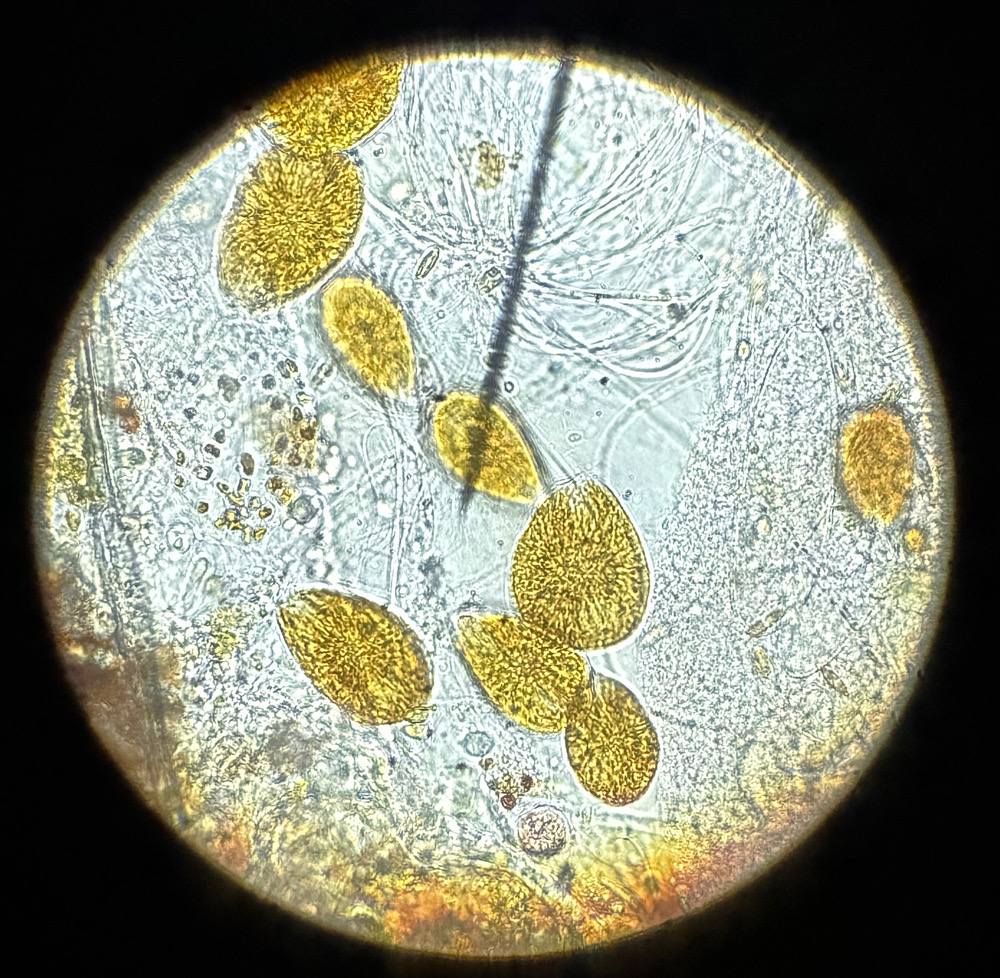 Hab heute mal mein Mikroskop rausgeholt und die Störenfriede abgelichtet, vielleicht hat ja jemand eine Ahnung was das sein könnte.
