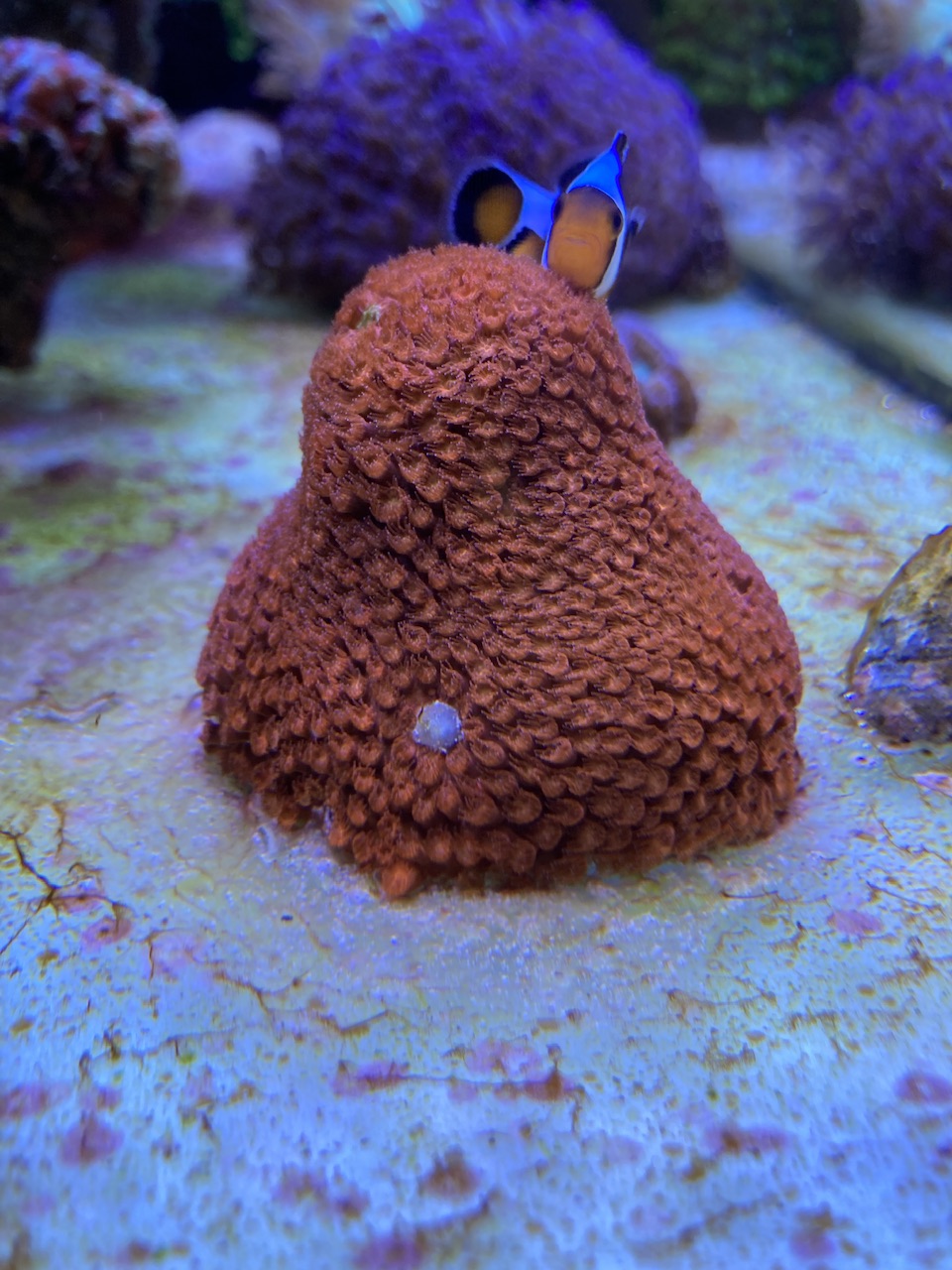Gerade jetzt ist eh wieder Cyanozeit, möglicherweise auch einhergehend mit Veränderungen in der Wassertemperatur, Tageslänge etc. Ich würde da nicht immer direkt etwas versuchen zu machen. Die pinke Stylo schaut auch sehr von der oberen Koralle irgendwie bedrängt oder abgeschattet zu sein, hier auf jeden Fall mal schauen, ob Du vielleicht mit der Strömung etwas verbessern kannst. Aber sonst würde ich das eher erst mal laufen lassen. Das mit der Milka und dem kompletten Einziehen habe ich bei mir auch ab und zu mal, wenn die wurdemannis da drin rum springen. Und bei Dir sitzt so ganz unschuldig eine Putzergaarnele daneben... Könntest Du bitte noch ein Foto mit den Dinos auf einer Gesamtaufnahme zeigen, damit man sieht, wo die genau sind und welche Koralle die ggf. ausgestoßen hat bzw. ob das eine Plage ist oder nicht? Das wäre hilfreich.