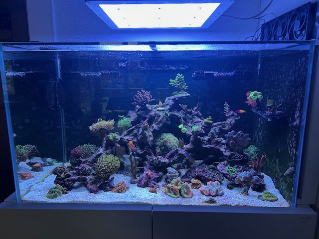 Ansonsten: ist noch ein Ecsenius midas eingezogen diverse Euphyllia's sowie einige weitere Acroporas und Gonioporas.