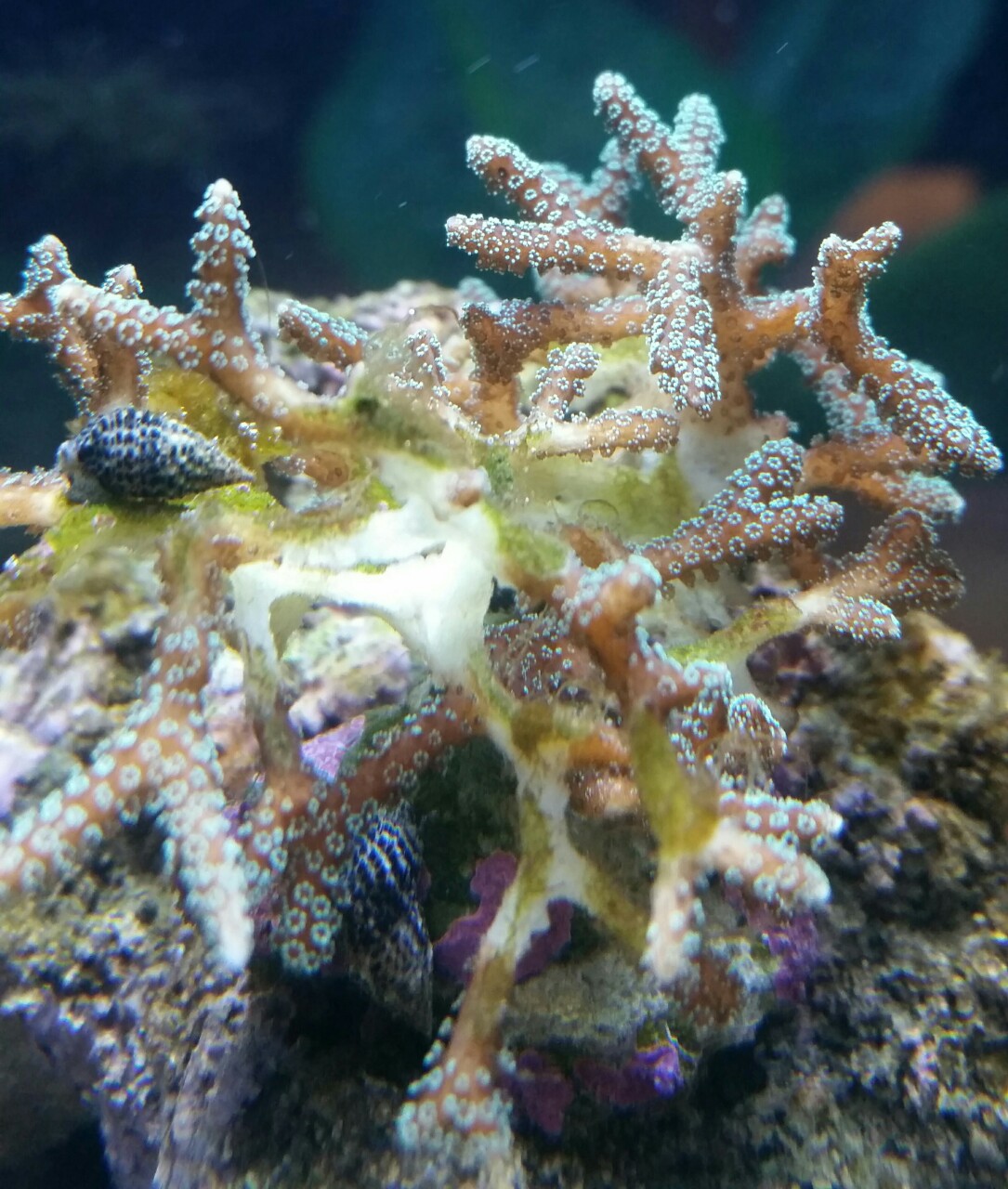 Ich hatte mich zum Thema brown jelly etwas belesen und "einfach mal" (zwei der Korallen waren ja eh so gut wie tot) getestet. Hatte einiges von Süßwasserbad oder einem Bad in Antibiotika gelesen und auch das Jodbäder hier eher ein Placebo sind...