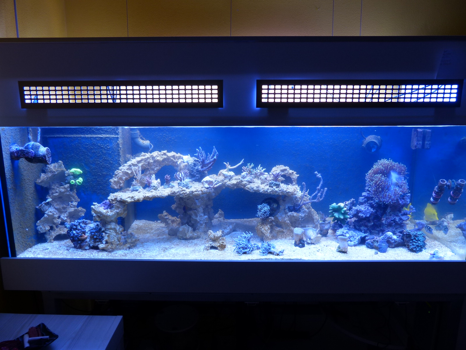 Mit 35%weiß 40%RB und 45% blau ,habe ja auch noch die 2x80w und 2x54w darüber
