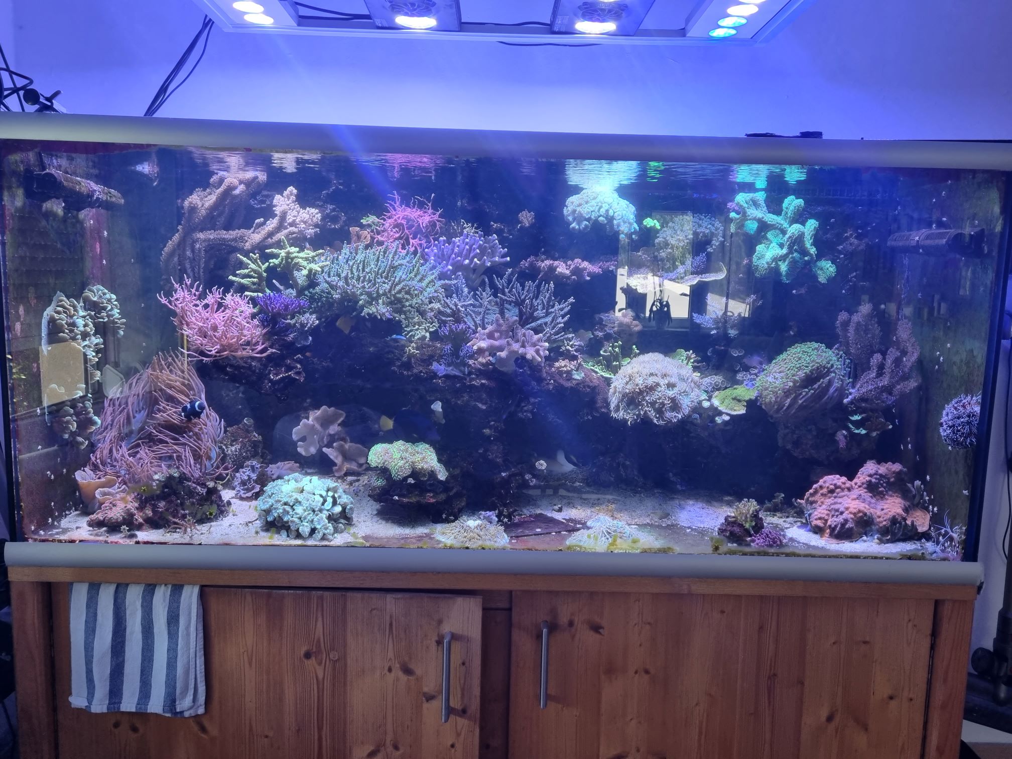 Mal wieder ein neues Bild und die Veränderungen die in der letzten Zeit durchgeführt wurden. Das Licht wurde umgestellt auf nur LED. Die Strömungspumpe wurde ersetzt wegen diversen Defekts. Das alles hat aber dem Wachstum keinen nicht geschadet. Ich kann nur vom System Sangokai schwärmen. Alle Wasserwerte sind in Ordnung.