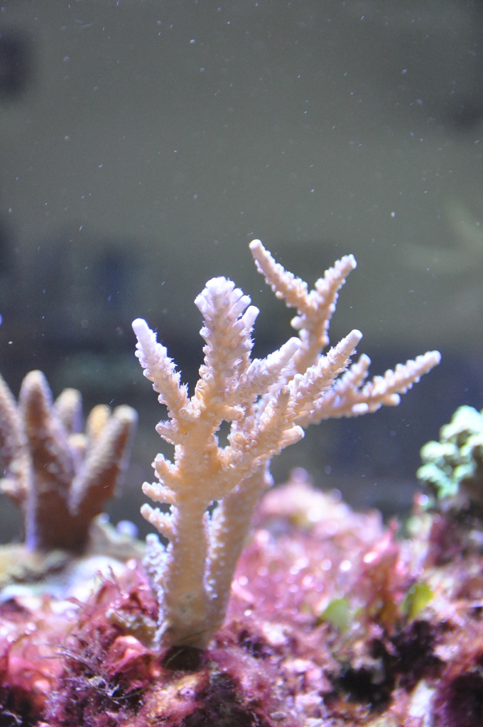 Was mir auch nicht so gefällt, dass mir die eine Acropora an der Basalscheibe beginnt auszubleichen. Ich habe eigentlich den Eindruck, dass sie genügend Strömung haben sollte.