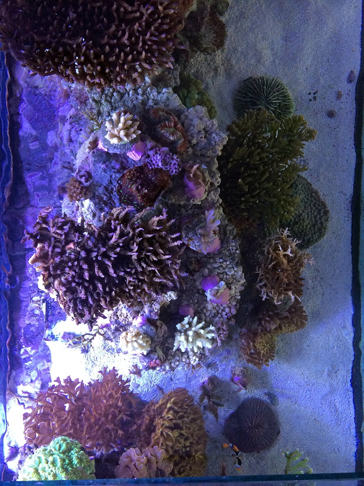 Leider hatte ich bei dieser Aktion soviel Dreck aufgewühlt, dass meine Werte nach oben schossen. Nitrat hatte ich ja immer hoch, aber danach lag er bei gut 50. Phosphat stieg leider auch von 0.025 auf 0,08. Dadurch duckelten viele SPS ein und waren unansehnlich braun.