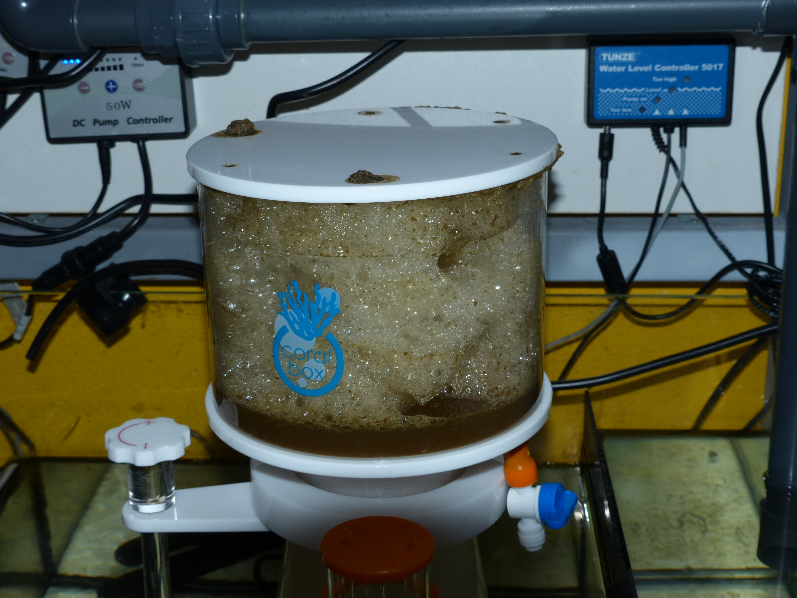Den Abschäumer habe ich auf maximal Trocken eingestellt und muss ihn jeden 2.Tag lehren da der Schaum so fest ist des