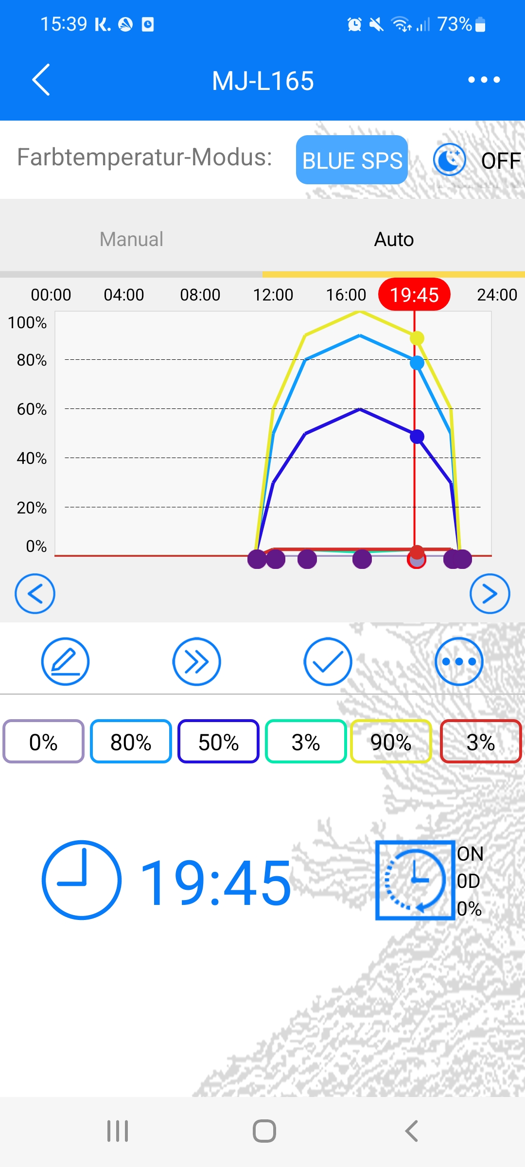 Hallo Zusammen, Ich wollte mal nachfragen ob meine Lampeneinstellung für ein 120 l Becken so in Ordnung ist 11 fährt die Beleuchtung langsam hoch und bis 22.15 dann langsam runter Screenshot_20220720-153911_Syna-G Cloud.jpg Screenshot_20220720-153918_Syna-G Cloud.jpg Screenshot_20220720-153927_Syna-...