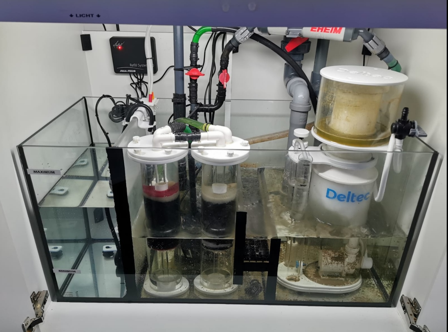 Hallo Matthias, Ist das eine Filtermatte, die da zwischen Abschäumer und Rücklaufbecken im Zwischenraum eingesetzt ist? Das täuscht, hier ist keine Filtermatte oder ähnliches eingesetzt. Es ist quasi nur eine Vorrichtung um evtl. mal etwas kurzfristig zu filtern. Aber würde bisher nicht genutzt. VG ...