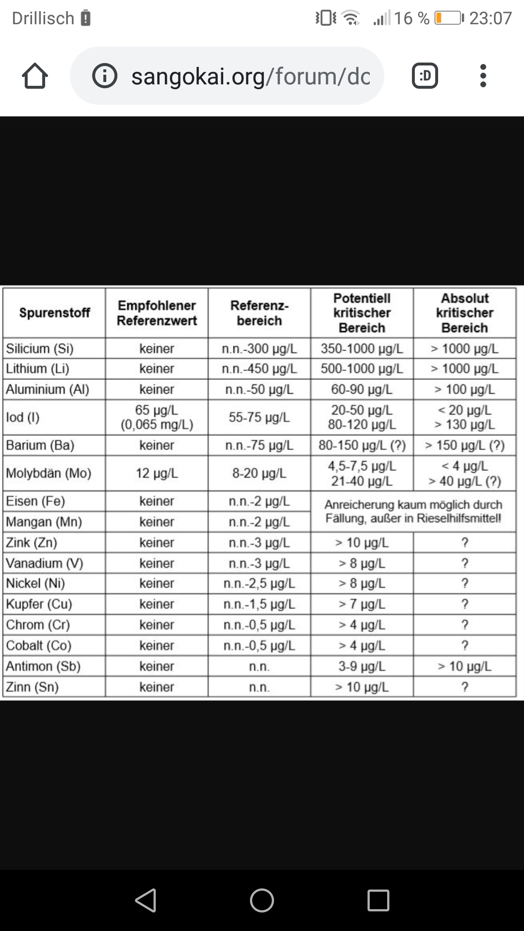 Bedeutet das, dass im sangokai-System die Werte, bei denen kein Referenzwert steht, ignoriert werden können (außer eine Unterschreitung des Wertes bei I und Mo bzw. einer Überschreitung des ggf. angegebenen Werts)?