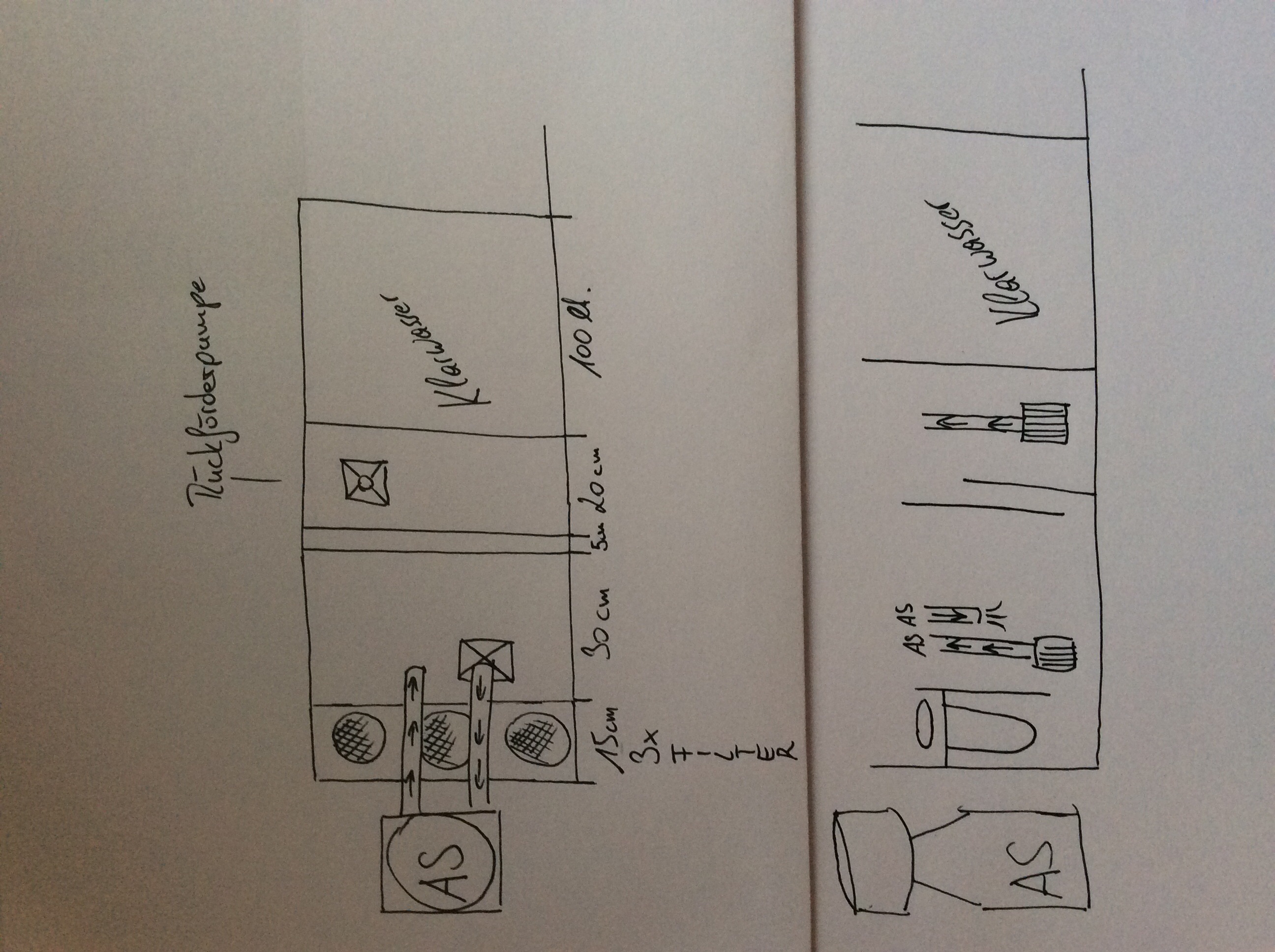 also meine Anordnung sieht den Abschäumer immer an erster Stelle vor. Danach käme dann der/die Filter. Was soll in den Zeofilter? Zeolith habe ich gerade alles abgeschaltet (vor einer Woche) und die Wasserwerte entwickeln sich weiterhin positiv. Notfalls werde ich den als PO4-Filter einsetzen.