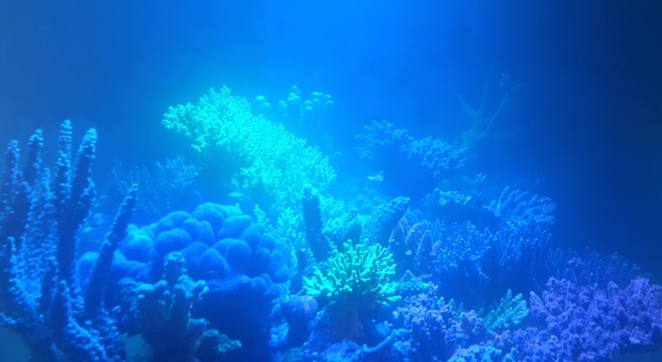 Heute Mittag beim anschalten der Beleuchtung war das Wasser ganz trüb, so als hätte man gerade nutri-basic #3 dosiert. Das ist plötzlich über Nacht gekommen. Gestern Abend standen wir noch vor dem Aquarium und sagten, dass alles gut wächst und toll aussieht und heute dann das. Ich würde am ehesten denken, dass es sich um eine Bakterienblüte handelt, wenn das Wasser so milchig aussieht. Allerdings gibt es eigentlich keine Ursache dafür. Weder im Aquarium noch im Zimmer wurde irgendwas verändert, die Technik funktioniert, es gab auch keinen Stromausfall. Alle Tiere leben. Der Abschäumer hat heute morgen nicht abgeschäumt, inzwischen tut er das aber auch wieder etwas. Die Korallen sehen ganz okay aus und die Fische verhalten sich normal und fressen auch, allerdings etwas langsamer. Vielleicht sehen sie das Futter schlechter. Eigentlich wäre erst morgen der Wasserwechsel dran aber den habe ich auf heute vorgezogen und 20% Wasser gewechselt. Es hat sich dadurch aber nichts verbessert.