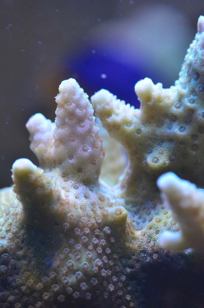 Hi Beni, ich sehe auch keine. Die Koralle befindet sich schon in einem schlechten Zustand. Wie sieht es bei den anderen Acroporen aus? Wie sind aktuell Deine Wasserwerte?