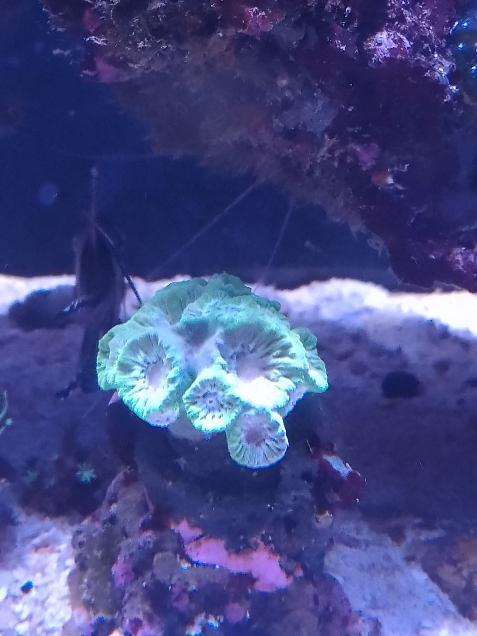 Die Euphyllia genauso. Stand nie wirklich gut, alle Tentakel sind eingezogen. Vor über einem Jahr zum Beckenstart stand Sie besser da, buschiger aber nie wirklich gut wie man es von Euphyllias kennt. Und dann noch meine Axifiga. Zu Beckenstart stand die gut, nach wenigen Monaten gab es sogar eine richtige explosionsartige Vermehrung der Köpfe. Aber dann hörte es recht schnell auf und dann wars das. Jeden Tag sieht die aus wie auf dem Foto. Alle 3 Korallen habe ich mit verschiedenen Standorten getestet. Mehr Strömung, weniger Strömung, weiter oben für mehr Licht, in "dunklen" Ecken bzw. unter Vorsprungen.