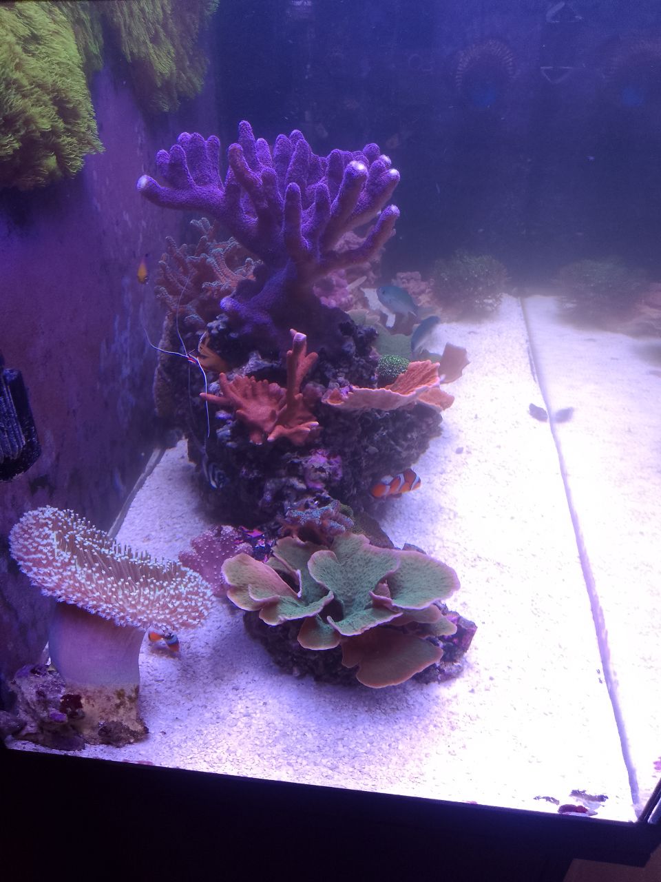 Eigentlich nicht viel. Ich habe einen Riffbarsch nachgesetzt aber der hatte leider die Nacht nicht überlebt. Aus irgendeinem Grund wurde dieser von einer Strömungspumpe angesaugt und ist dann gestorben. Das Tier war beim Händler fit, sah absolut gesund aus und war auch gut genährt. Wie das Tier in die Ansaugung kam ist mir schleierhaft, das kenne ich nur von angeschlagenen Tieren und so sah es echt nicht aus. Immer schade wenn ein Tier so sterben "muss"...