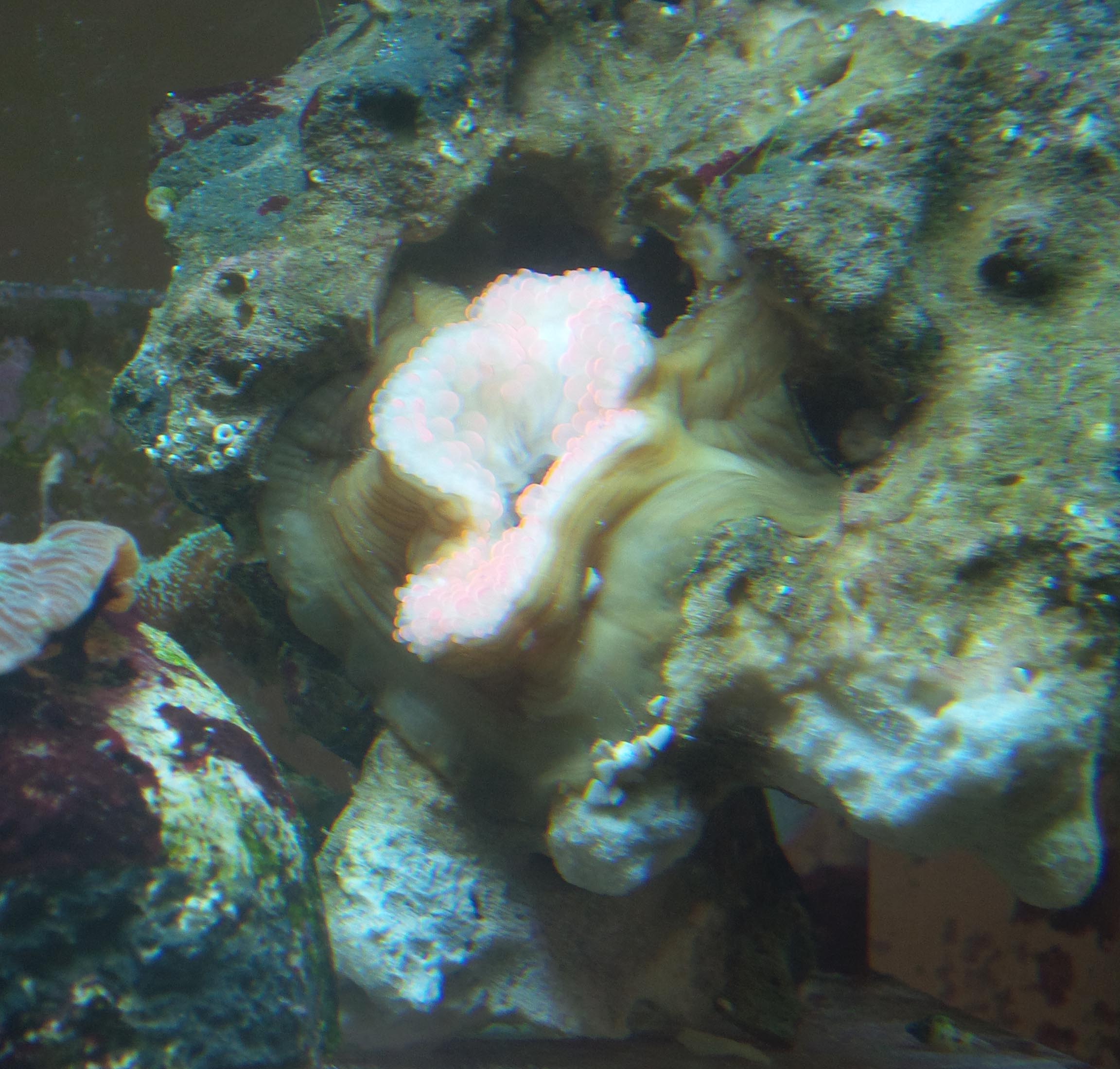 Zuerst haben wir nur mit einer Nano Marinus ReefLight 36 Watt beleuchtet. Sind zwei weisse und zwei blaue Leuchtstoffröhren. Da das aber ganz offensichtlich nicht genug war, und wir auf die schnelle nichts passendes finden konnten, haben wir noch eine zweite Reeflight zugeschaltet. Da diese Lampen nicht gerade für ihre Strahlungsstärke bekannt sind, glaube ich nicht, dass die Anemone zu viel Licht hat. Oder meinst du mit Strahlungsstress, dass sie zu wenig Licht hat?Maik Rech hat geschrieben: Darf ich fragen wie du beleuchtest?