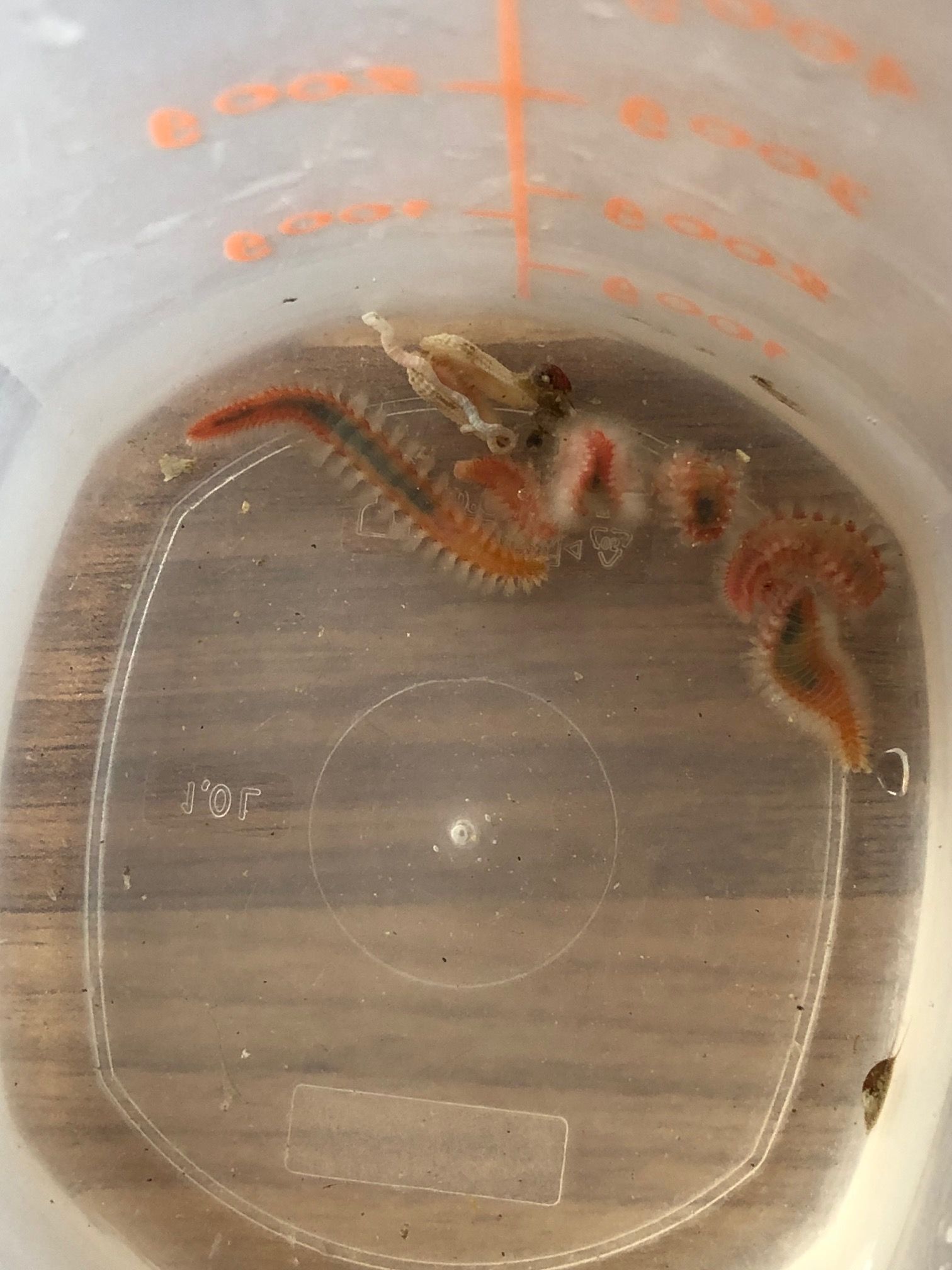 erstmal keine Panik... das sind keine Feuerborstenwürmer. Die mit dem blauen Streifen sind eher gutartig und tolle Resteverwerter. Die gehören irgendwie dazu...