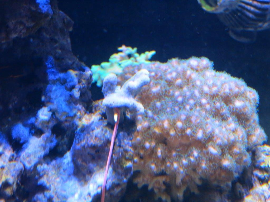 heute abend habe ich mich getraut, die kleine Koralle abzuschneiden. Mittels Zahnstocher und Gummi habe ich sie an der neuen Stelle fixiert.