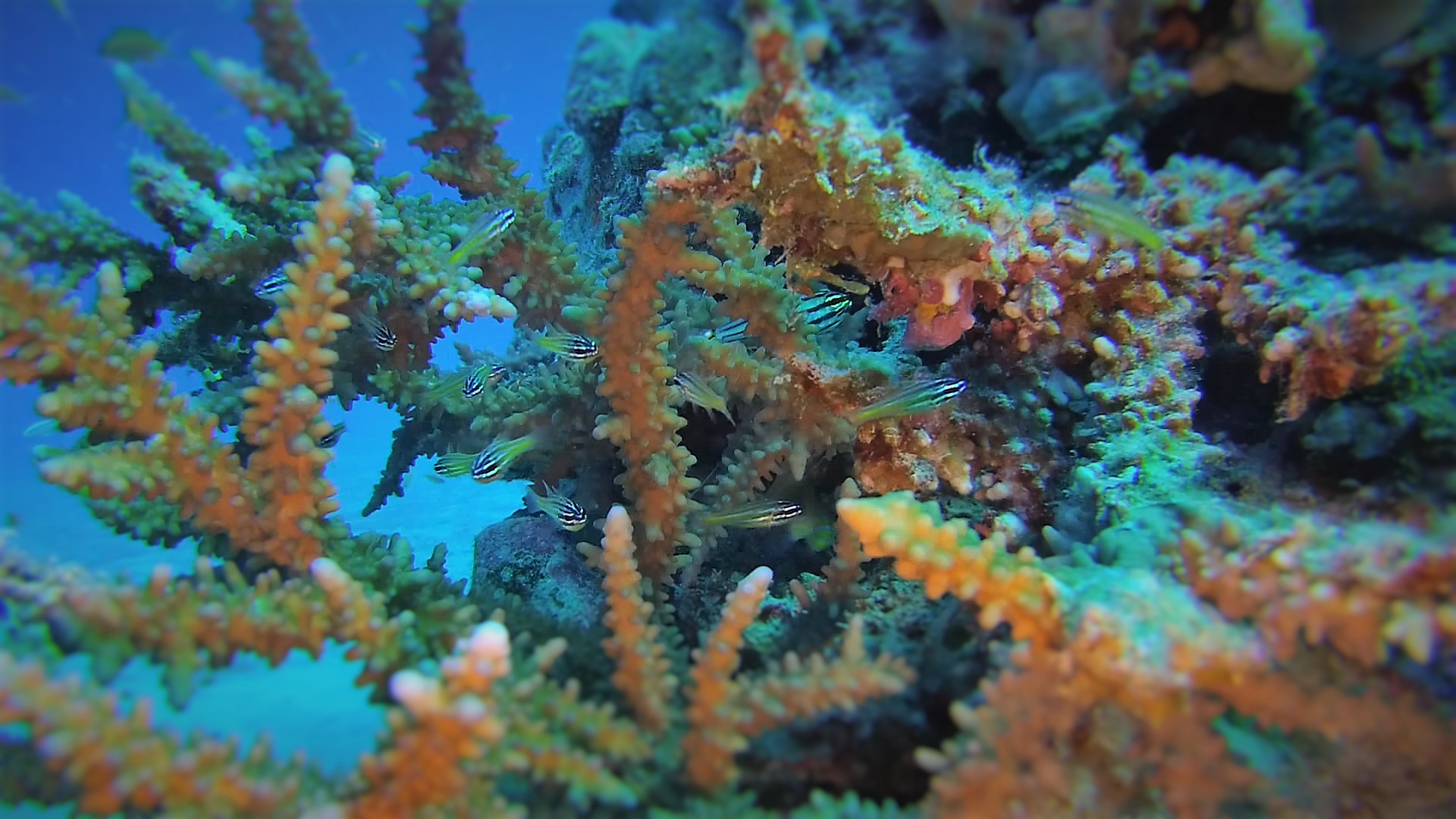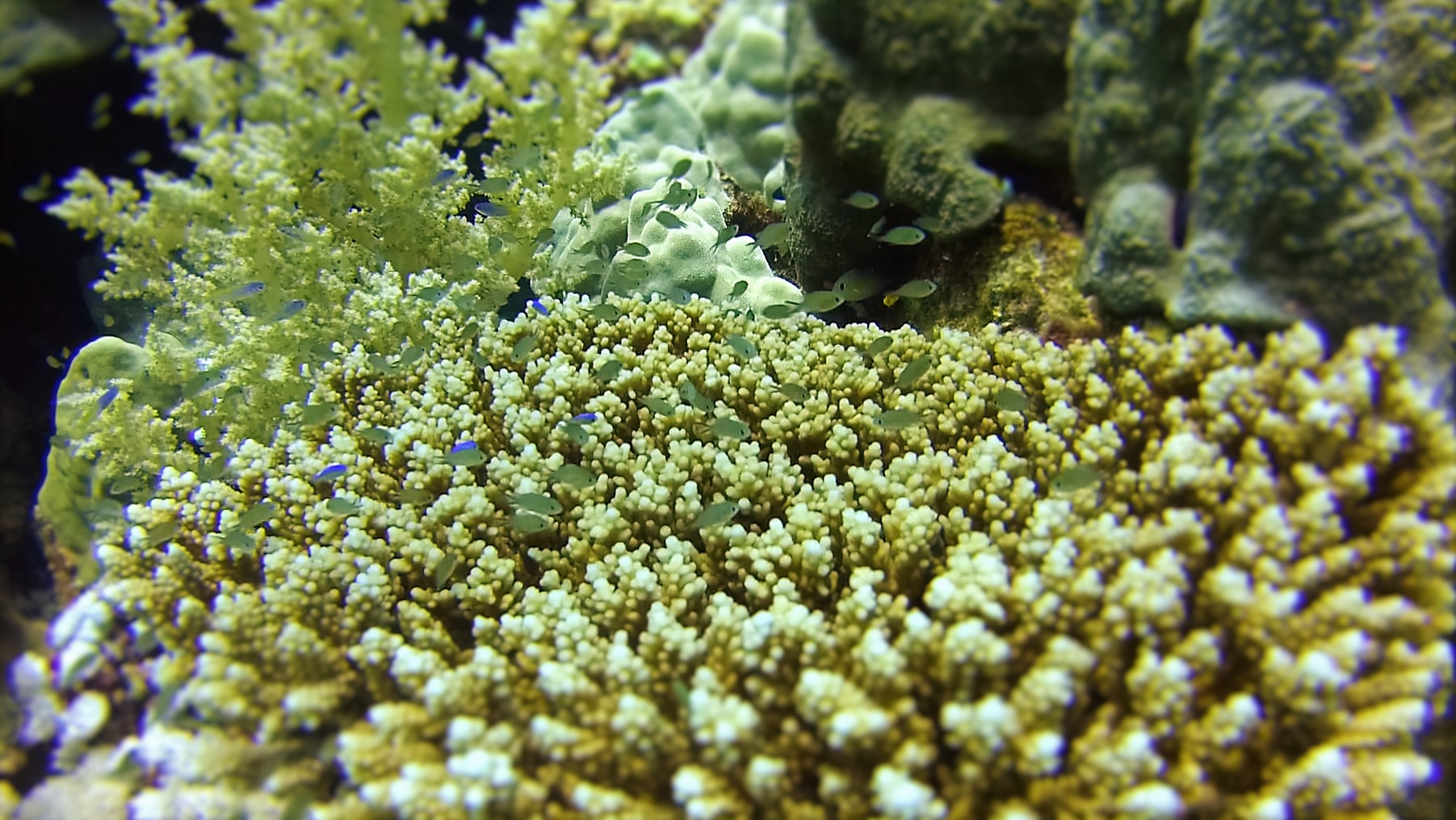 Tolles Bild mit den juvenilen Dascyllus aruanus... wenn die mal so klein und niedlich bleiben würden