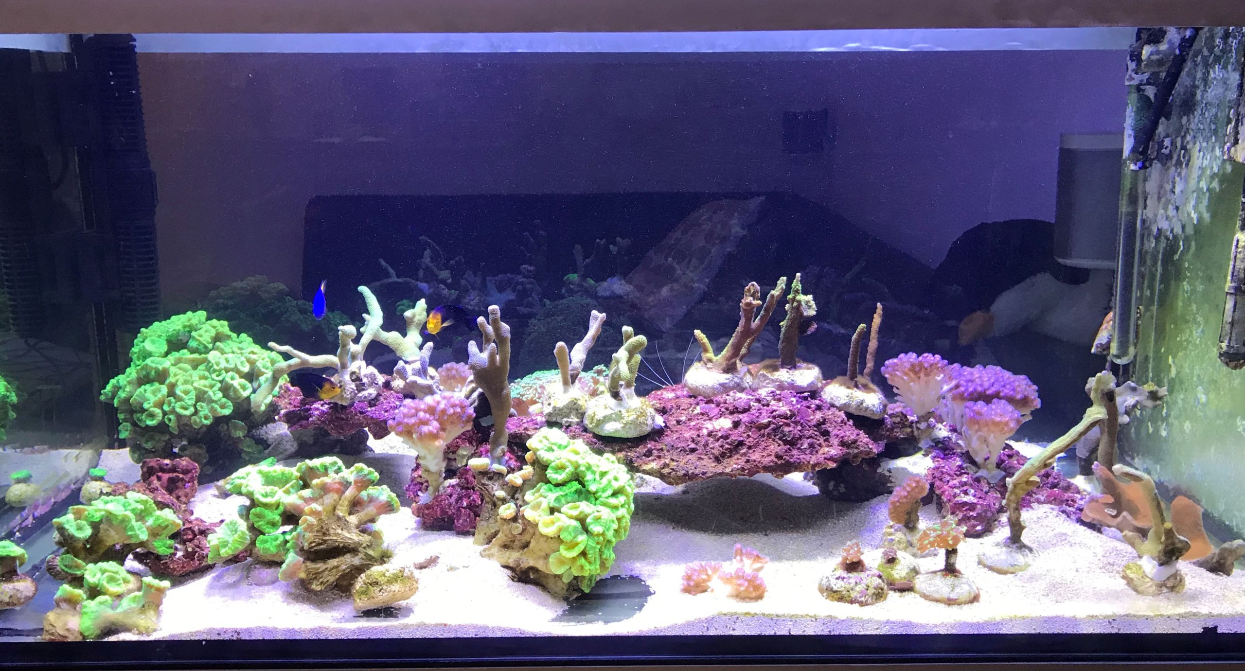 Ich hab bei mir alles in Kübel (Korallen) und Tupperdosen (Fische) zwischen gelagert.
