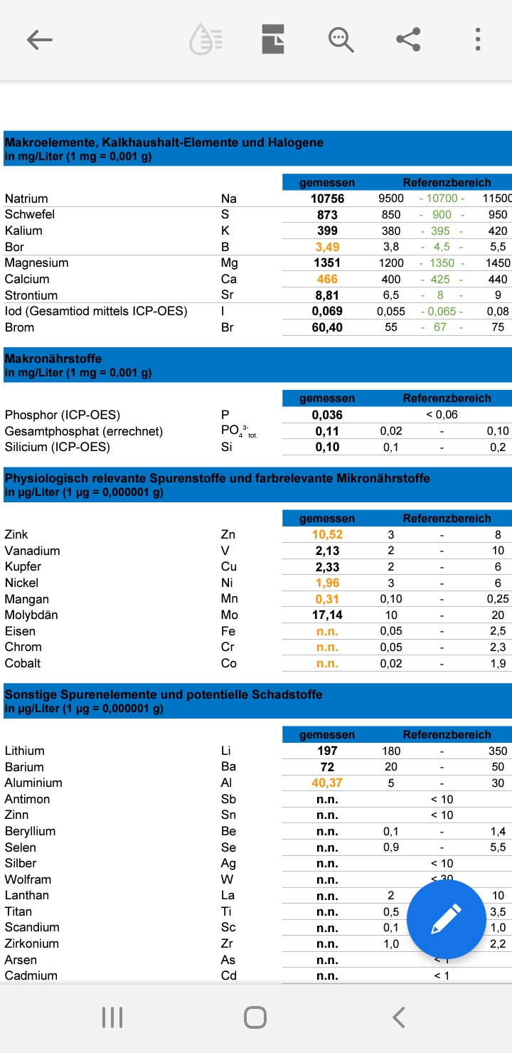 CA1, CA2 und KH setzt du nach Anweisung an und dosierst nach Verbrauch. KH sollte zwischen 7-7,5 und Calcium bei 420 liegen. Also CA erst mal fallen lassen.