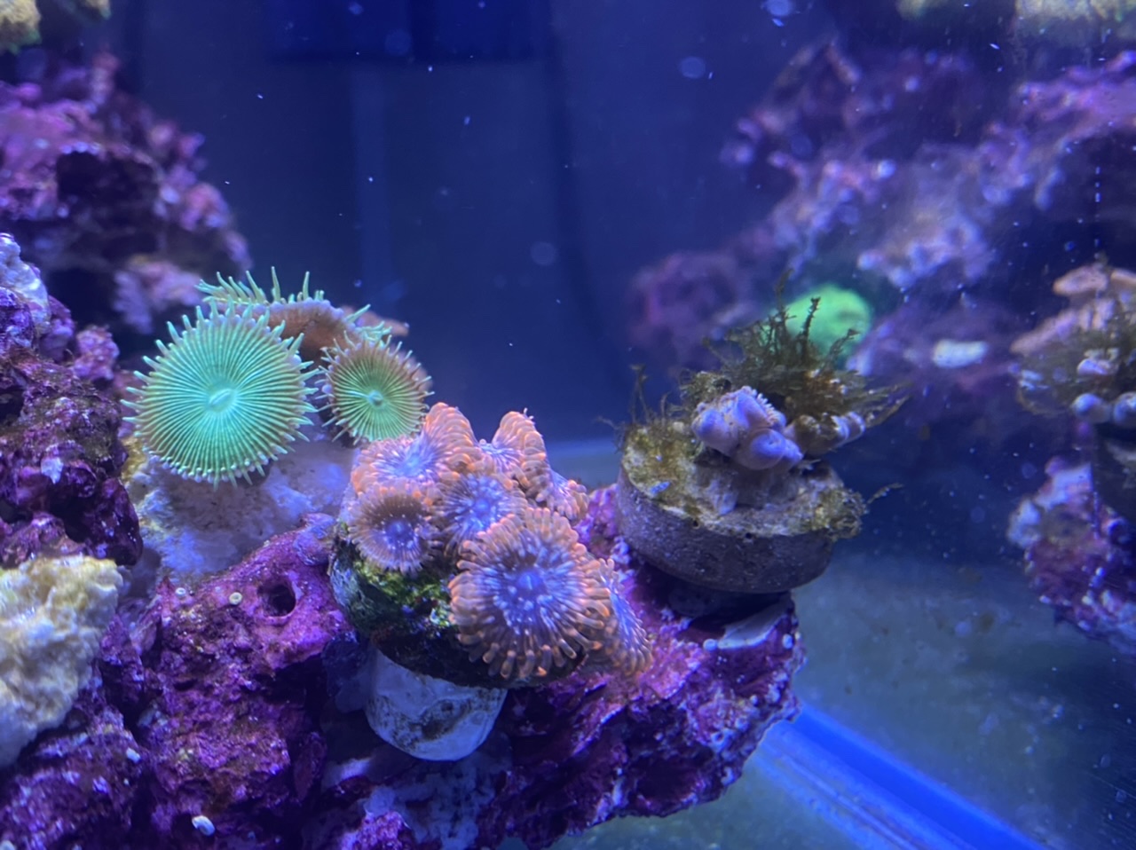 Habe dann einen wasserwechsel von 7,5l gemacht und heute ist die Trübung immer noch extrem. Das Sterben der Schnecke wird definitiv nochmal einen ordentlichen Schlag oben rauf gegeben haben! Zusätzlich scheint einer der Clowns dadurch Pünktchen abbekommen zu haben… das alles nach dem die Bryopsis so übertrieben gut von den Schnecken kalt gemacht wurden! Das einzige ist, dass die Schnecken regelmässig meine ganzen Ableger um/runter schmeissen.. das nervt. Hier muss ich mir nochmal überlegen, die doch zu verkleben.
