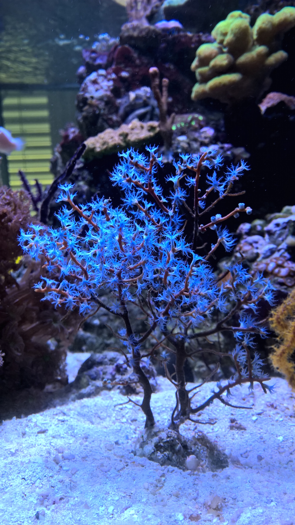 Bezüglich der Distichopora habe ich noch ein Bild beigefügt, welches ich letztens gemacht habe. Da sieht man die Distichopora relativ gut, obwohl ich das Foto mit der Tubastraea gemacht habe. Leider kann ich persönlich nicht beurteilen, ob es ihr blendend, gut oder eher nicht so toll geht. Es gibt wenige die dieses Tier schon hatten und ich mich austauschen kann. Auch finde ich im Netz nicht wirklich viel brauchbares. Somit bin ich auf meine eigenen Beobachtungen angewiesen und muss mit der Zeit gehen und schauen wie sie sich weiter entwickelt und verändert.