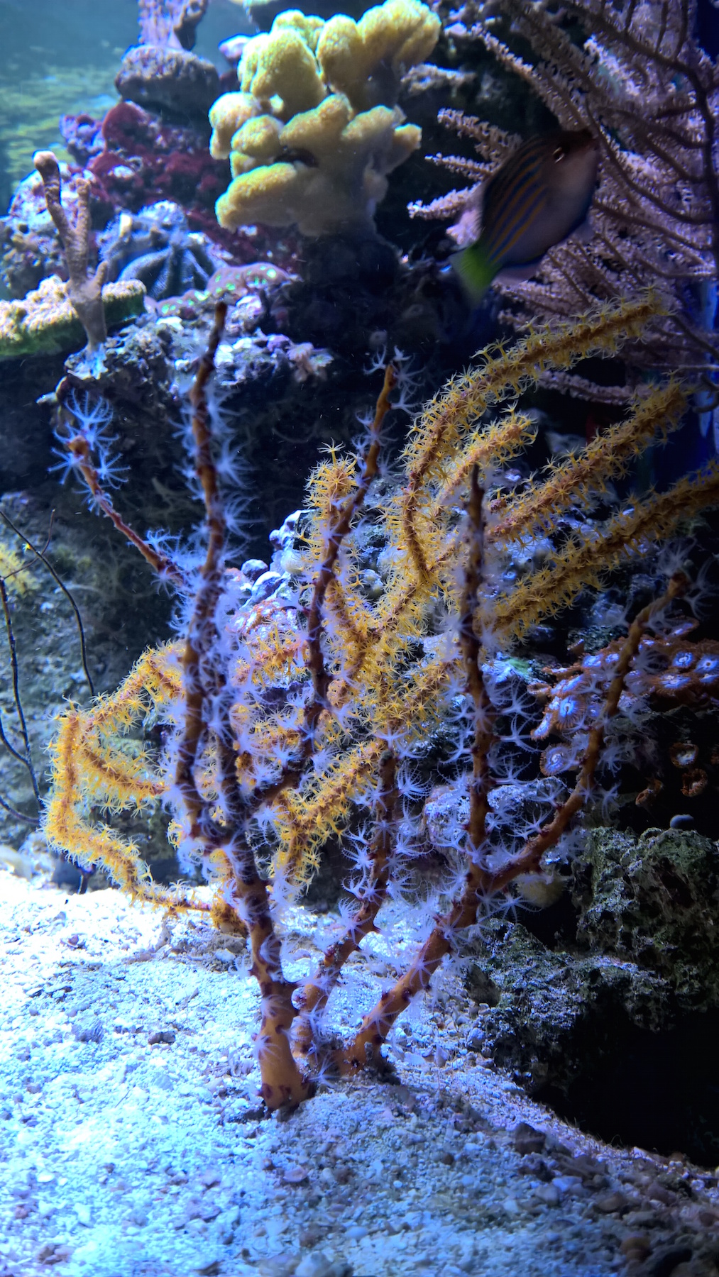 Habe ja mal meine Gorgonien hier eingestellt, damals als ich einzelne gerade neu ins Becken getan habe. Da waren sie ja nicht so erquickend und zum Teil eher dem Tod als dem Leben geweiht. Heute ein paar Wochen später sieht es diesbezüglich schon viel besser aus. Einzelne haben sich prächtig erholt und blühen immer schöner und reicher an Tentakeln.