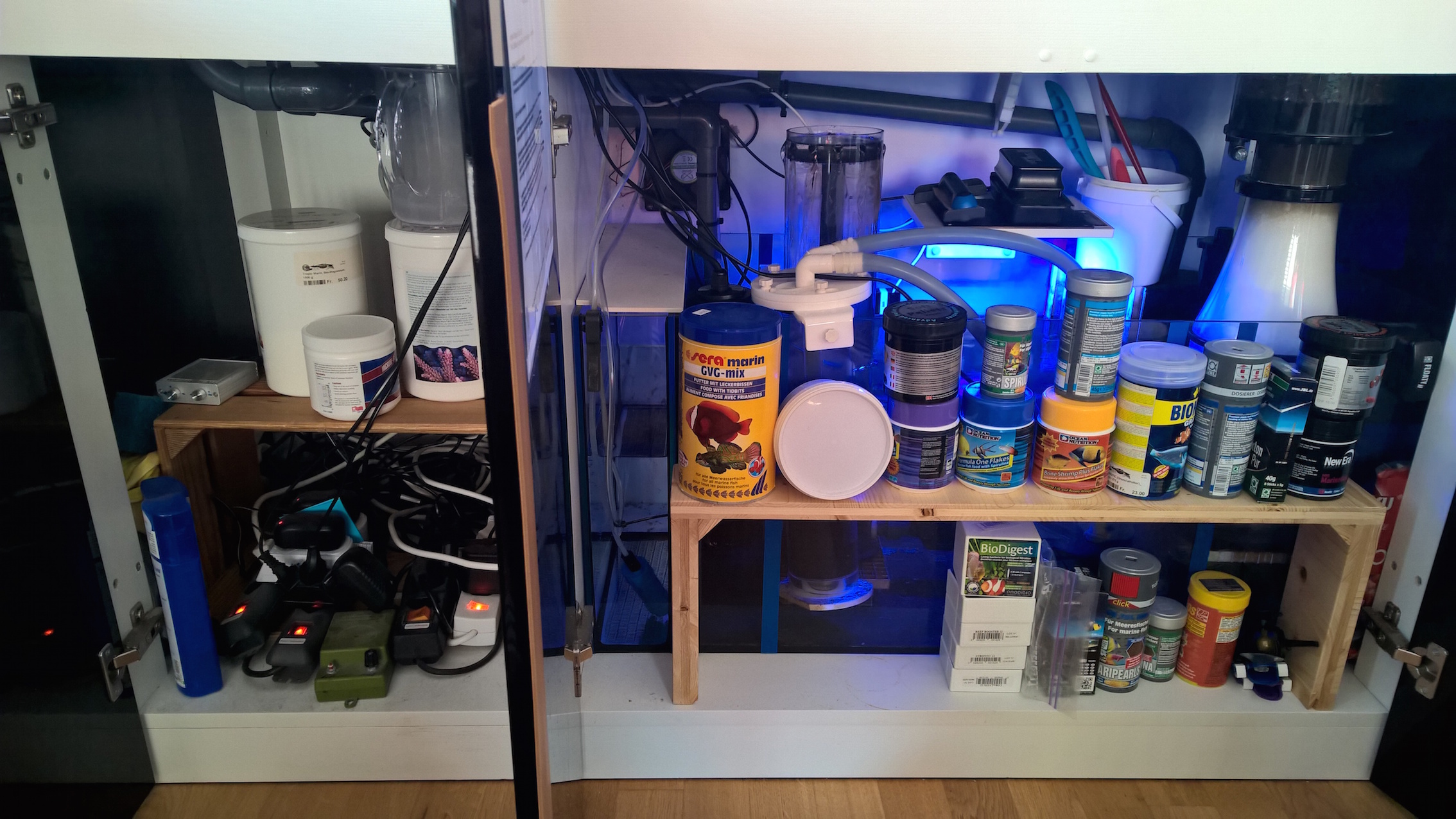 Das TB bleibt mehr oder weniger so sauber, weil ich es einmal im Monat reinige. Stell da alles ab was im TB ist, reinige die Scheiben, Boden etc. Lass dann alles setzen und sauge dann ab. Gibt dann so ungefähr 20Lt. "Dreckwasser", welches als Wasserwechsel (zusammen mit Dichtekontrolle) ersetzt werden. Das Becken hat 500Lt. und das ganze System, mit TB, so um die 608Lt. So bleibt es schön sauber und sieht gut aus
