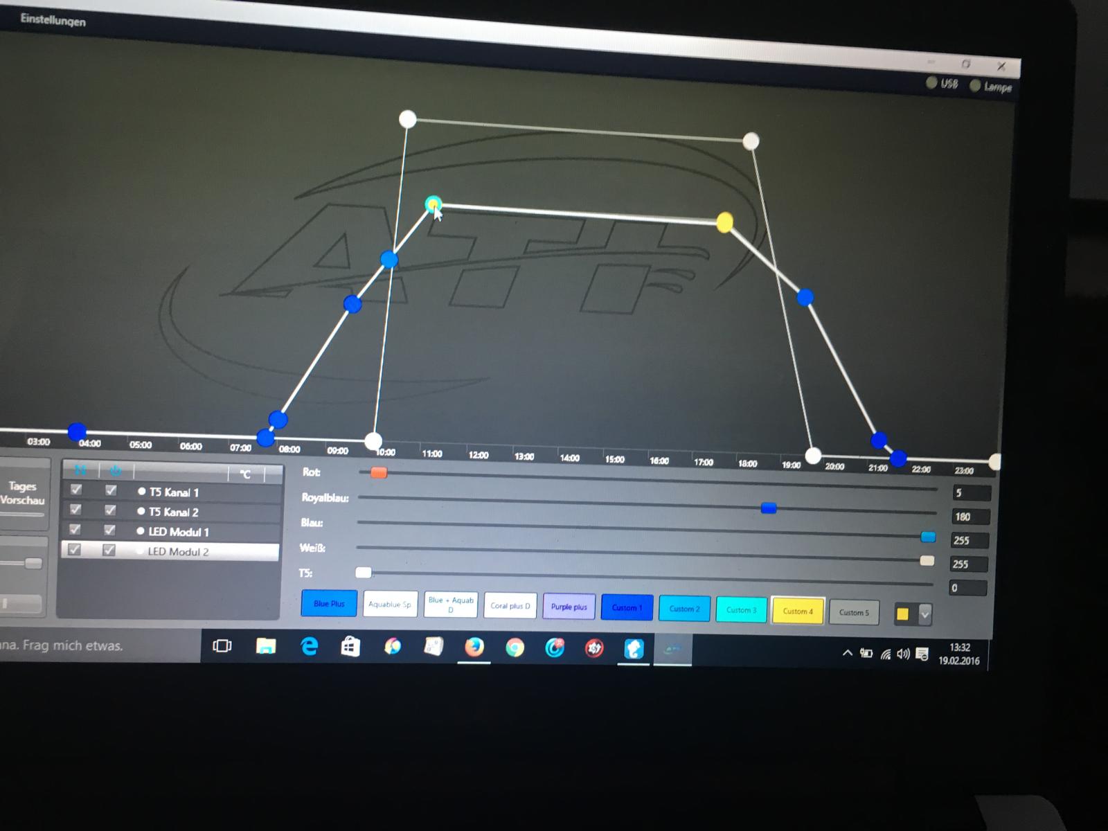 Insgesamt hast Du aber jede Menge Licht über dem Becken. Fahr mal die T5 etwas runter und nicht auf Volllast. LED und T5 würde ich die Profile jeweils übereinander legen, dass das Licht über den Tag gleich bleibt. So hast Du Lichtschwankungen drin und das gilt es zu vermeiden.