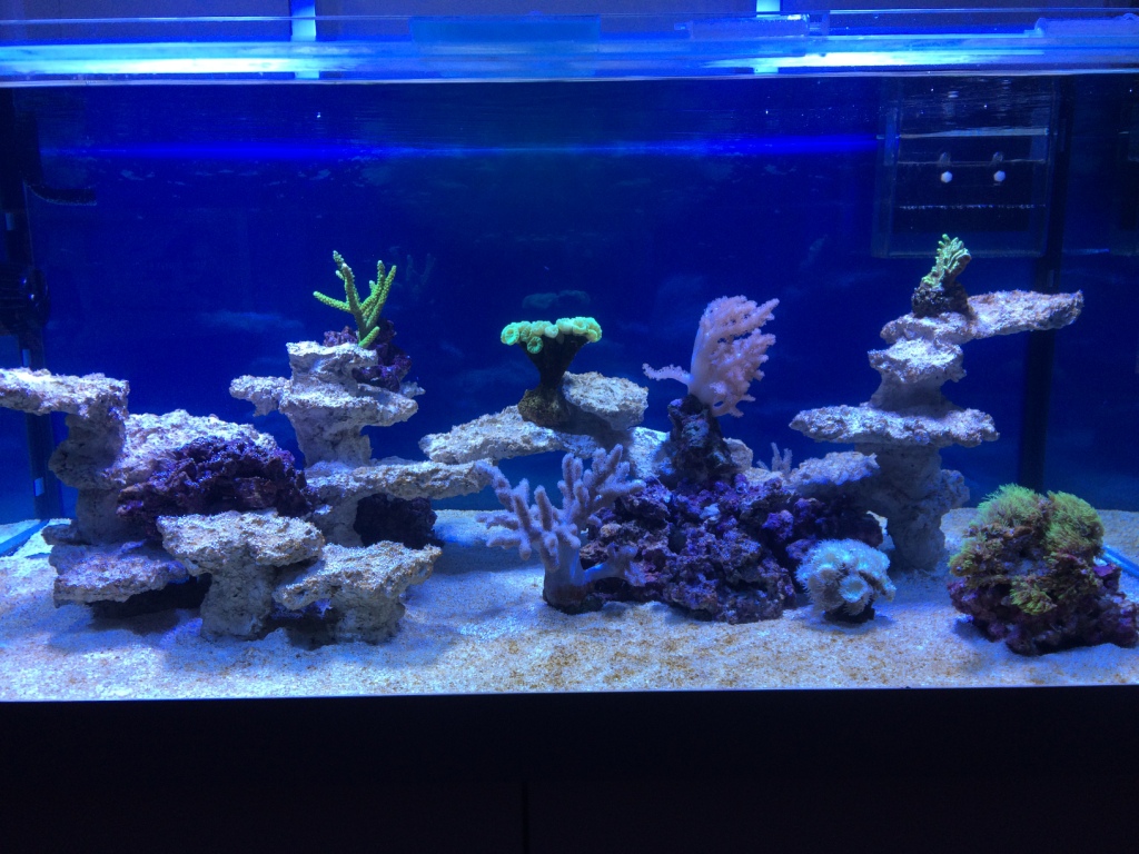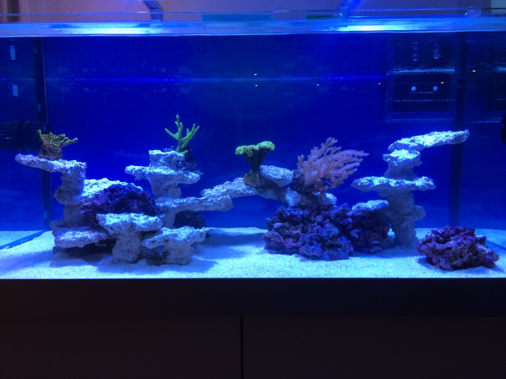 Ich fahre komplett mit Sangokai-Produkten. Letzten Samstag sind die ersten Korallen eingezogen, eine Monti Confusa, eine Acro Enzmann, eine grüne Caulastrea und ein Klyxum. Diesen Donnerstag sollen weitere Korallen einzug halten. Gruss Roger