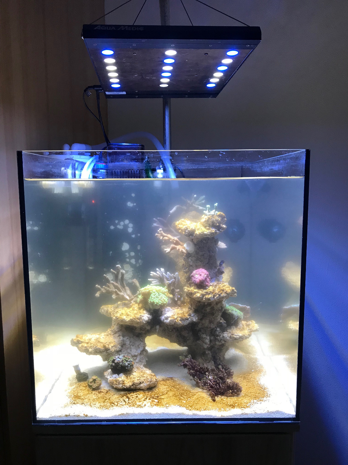 Ich selber habe seit drei Jahren ein AM Cubicus und da auch die aquareefLED darüber und meinen SPS geht es super.