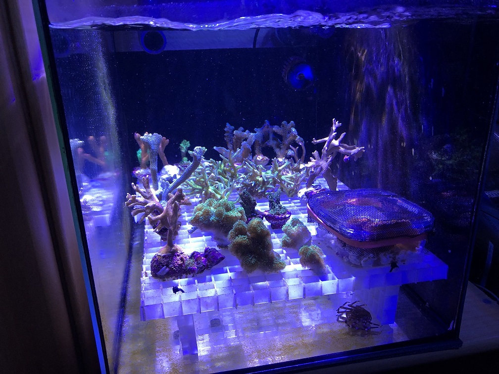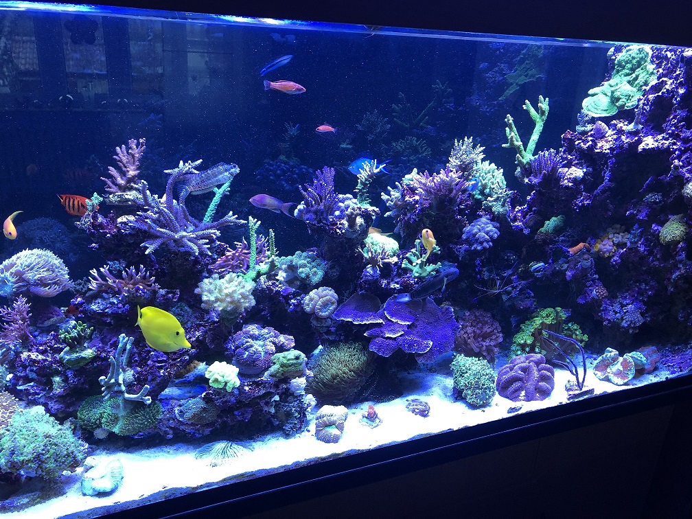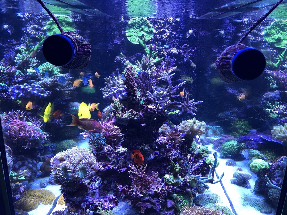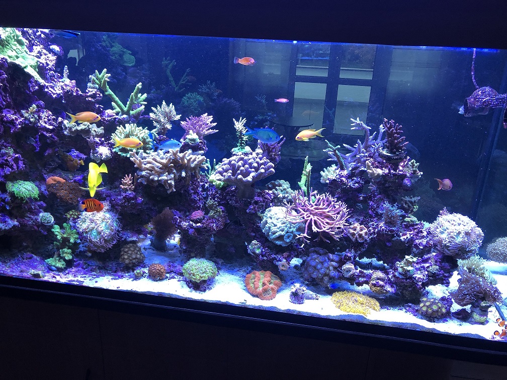 Besatz ist ist ca. 50/50 LPS und SPS. Fische:1x Hawaii Doc, 1x Chelmon, 2xFlammenzwergkaiser, 5x Pseudanthias, 1x Phalaena Grundel, 3x Chromis, 2x Clownfische, 1x Blenny, 1x Mandarinfisch, 2x Parcheilinus Lippfische, 1x Putzerlippfisch, 2x Kauderni + 9 Babys 8Wochen alt.