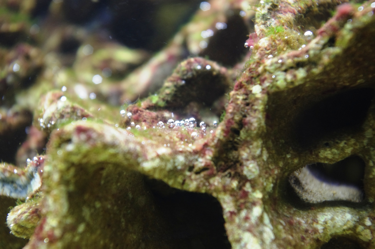 Wichtig ist aber, dass Du den Korallenbesatz weiter fortsetzt. Es geht hier auch konkret darum, die Gestaltung mit Korallen zu besiedeln und nicht die Korallen auf den Sand zu stellen. Die Dekoration braucht eine Raumkonkurrenz, d.h. Korallen, die auf der Deko wachsen und dadurch auch das Auftreten von Algen und Cyanos verhindern. Das sollte man aber auch recht zügig machen.