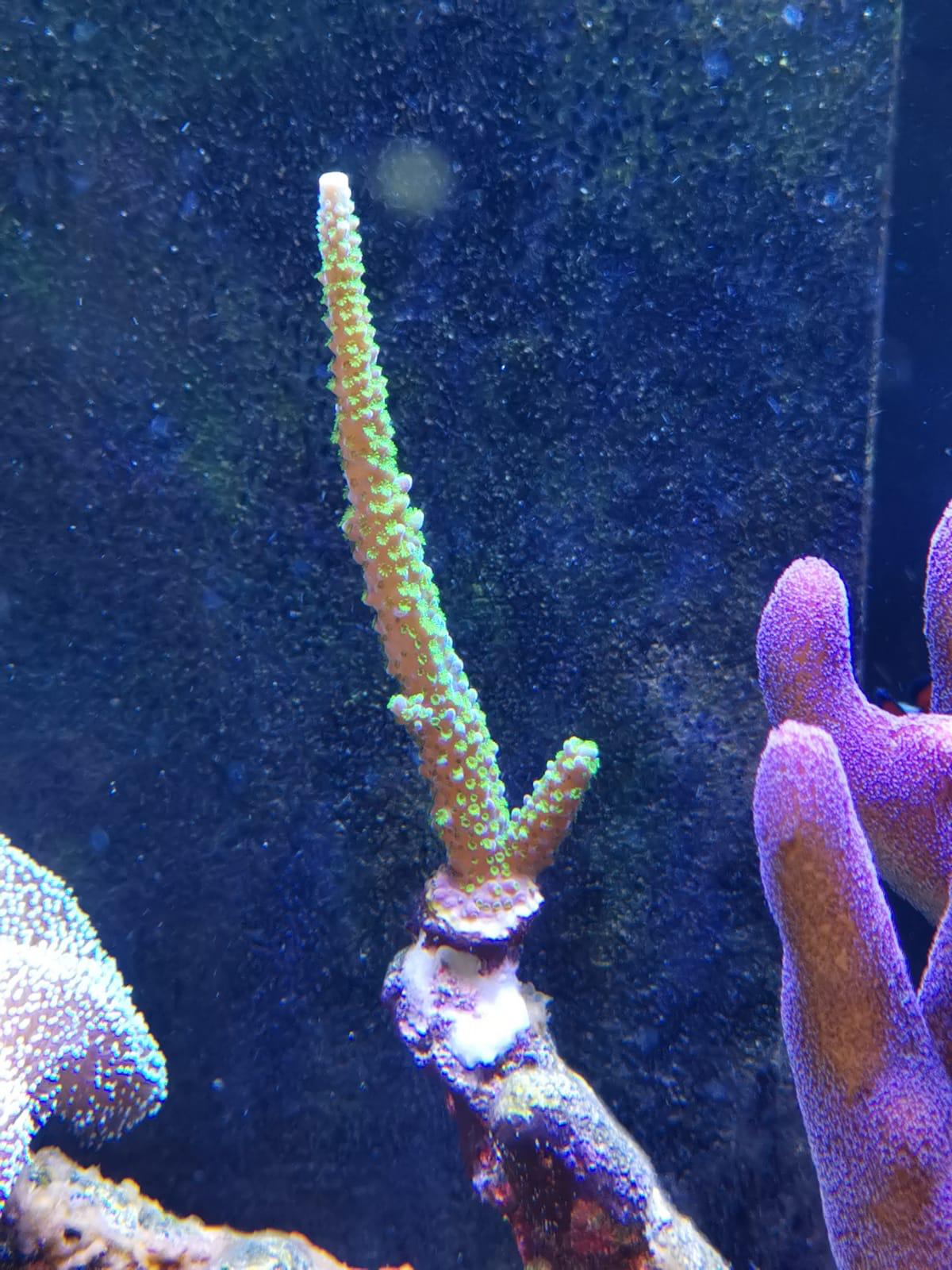 Ich hatte vor ca 1 Monat nach Rücksprache mit Jörg meine hybrid Lampe verändert. Hier habe ich die LED starke von 90 auf 50 Prozent runter. Da mir die weichkorallen und lps eingegangen sind. Das hat gut geholfen. Bei allen sps ist das Polypenbild auch richtig ausgeprägt.