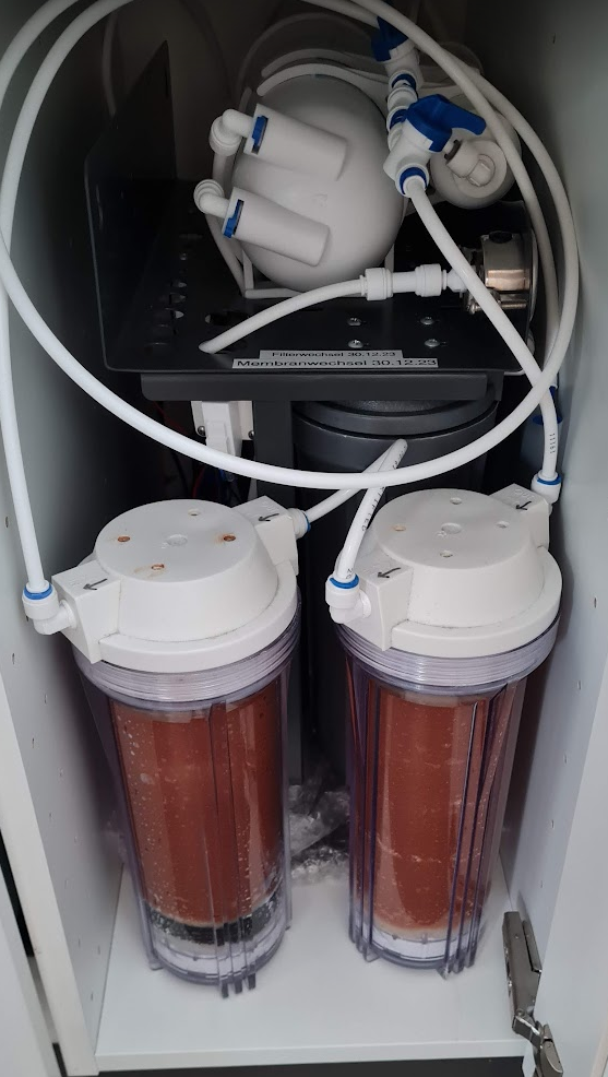 Kannst du bei der Osmoseanlage die Durchflussgeschwindigkeit regulieren? Falls ja, kannst du das mal machen, und schauen, ob das Wasser sauberer wird.