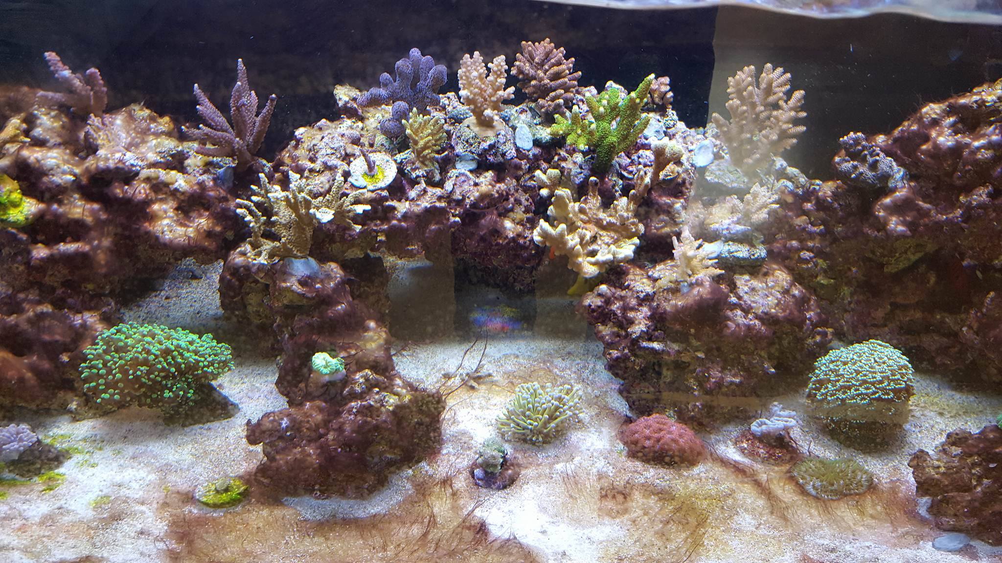 Anbei noch ein paar Bilder von den Cyanos. Diese habe ich am Wochende zu ca 80% abgesaugt. Acros wachsen jetzt, lps stehen gut, die Milka möchte noch nicht wachsen, steht aber gut da ,SPS Polypenbild ingesamt 2+