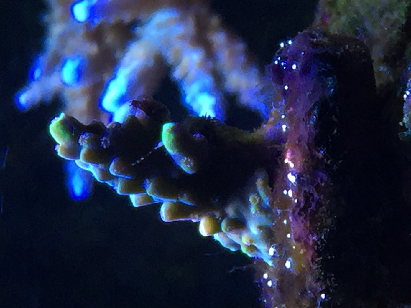 An den weißen Stellen war nichts zu erkennen. Am Rest der Koralle teilweise schon.
