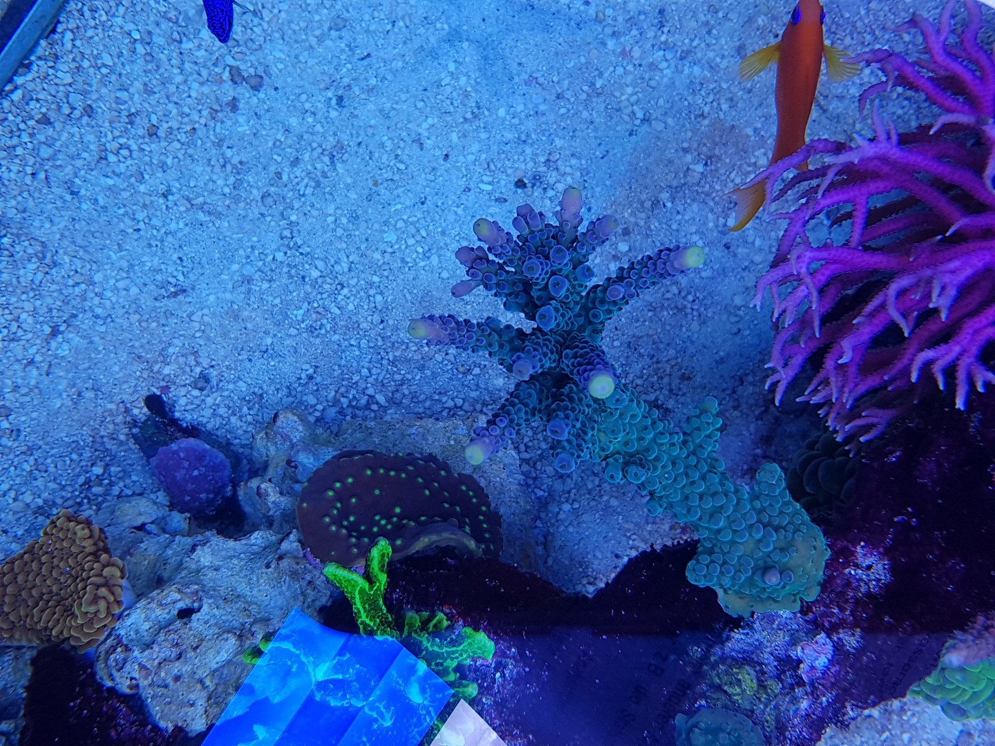 Trotz anhaltender Cyanos geht es den Korallen sehr gut. Polypenbild und Wachstum sind tadellos.