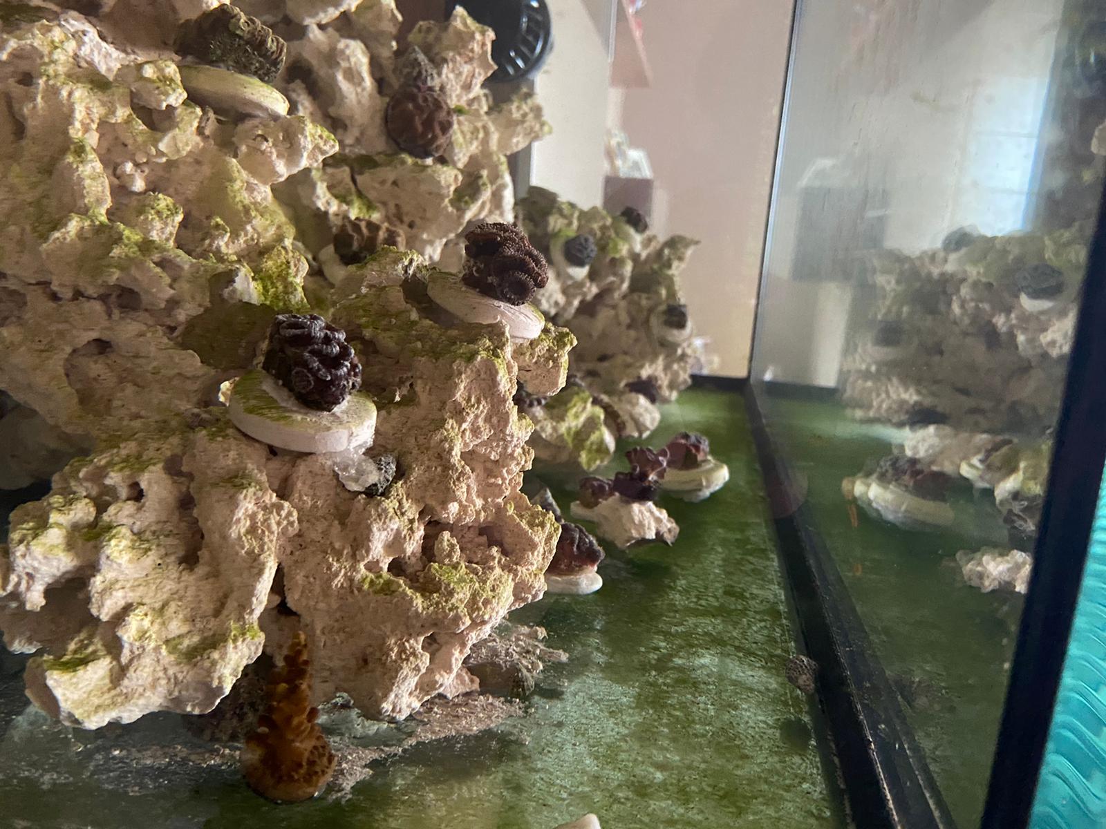 Korallen wieder ins Hauptbecken gesetzt. Werden in 2 Tagen erst wieder eingeklebt.
